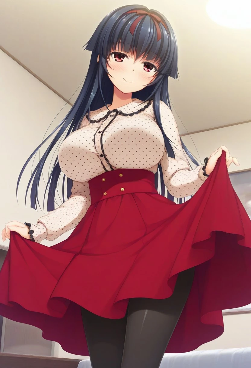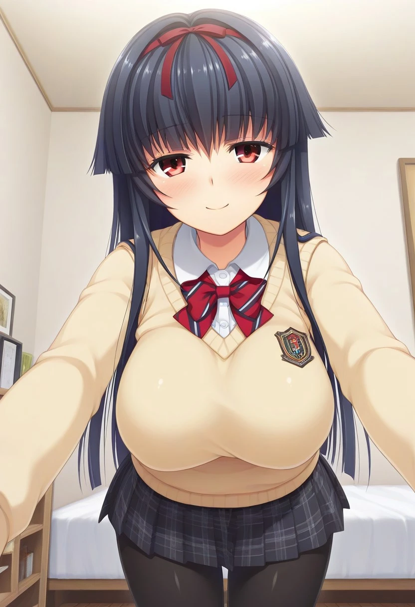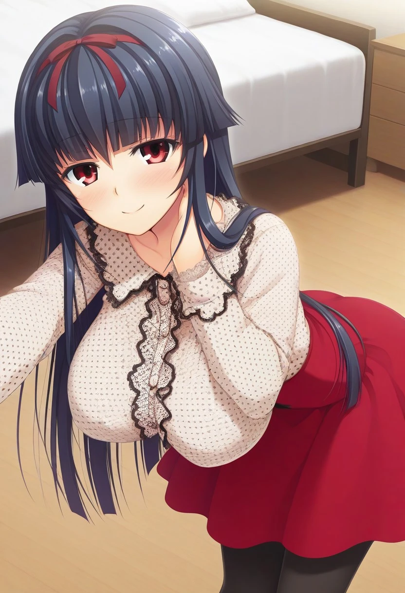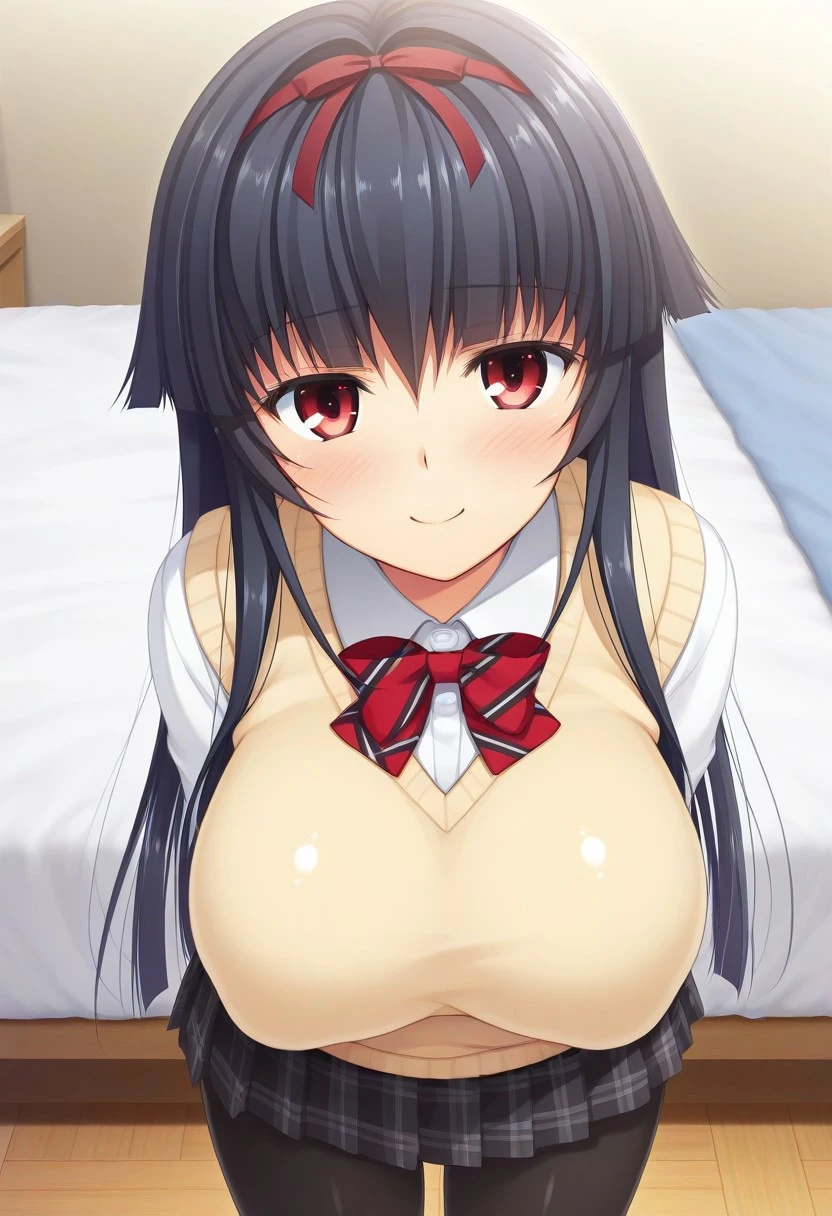 Recommend Prompt:Honami Himekawa, red eyes, black hair, long hair, red hairband, hair ribbon, hime cut,