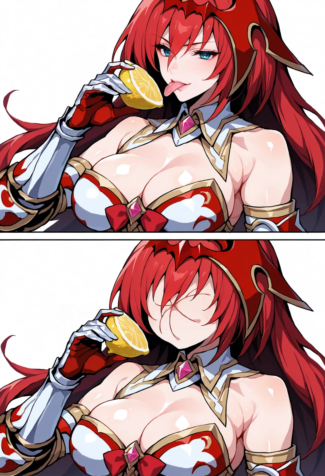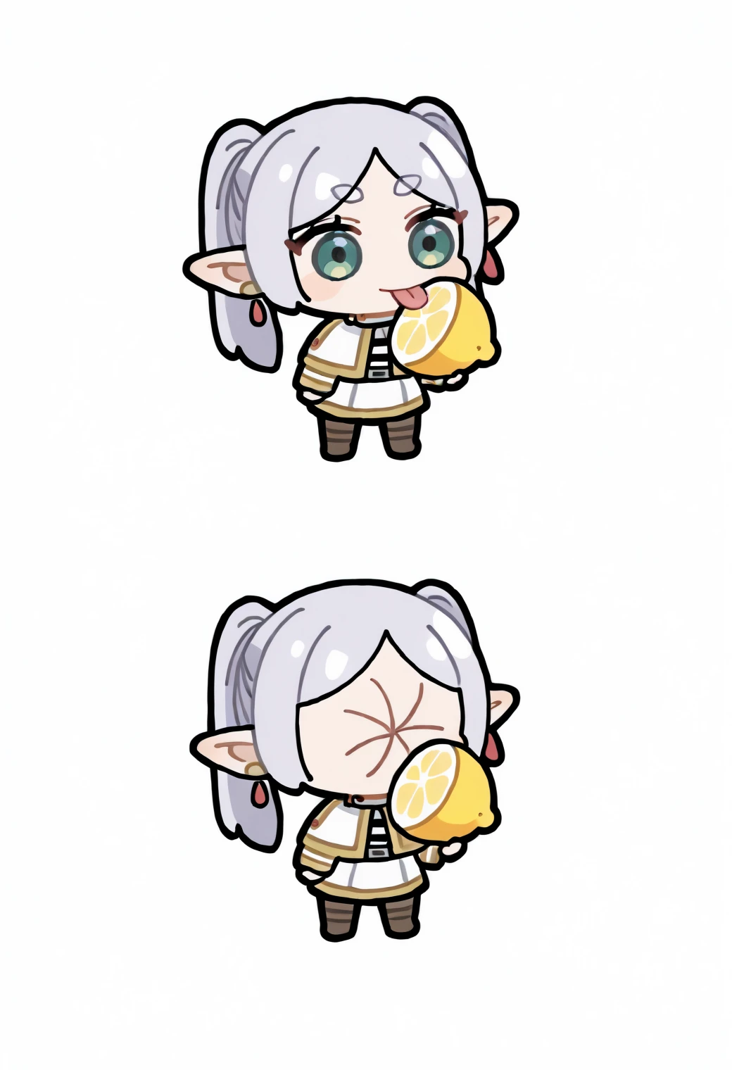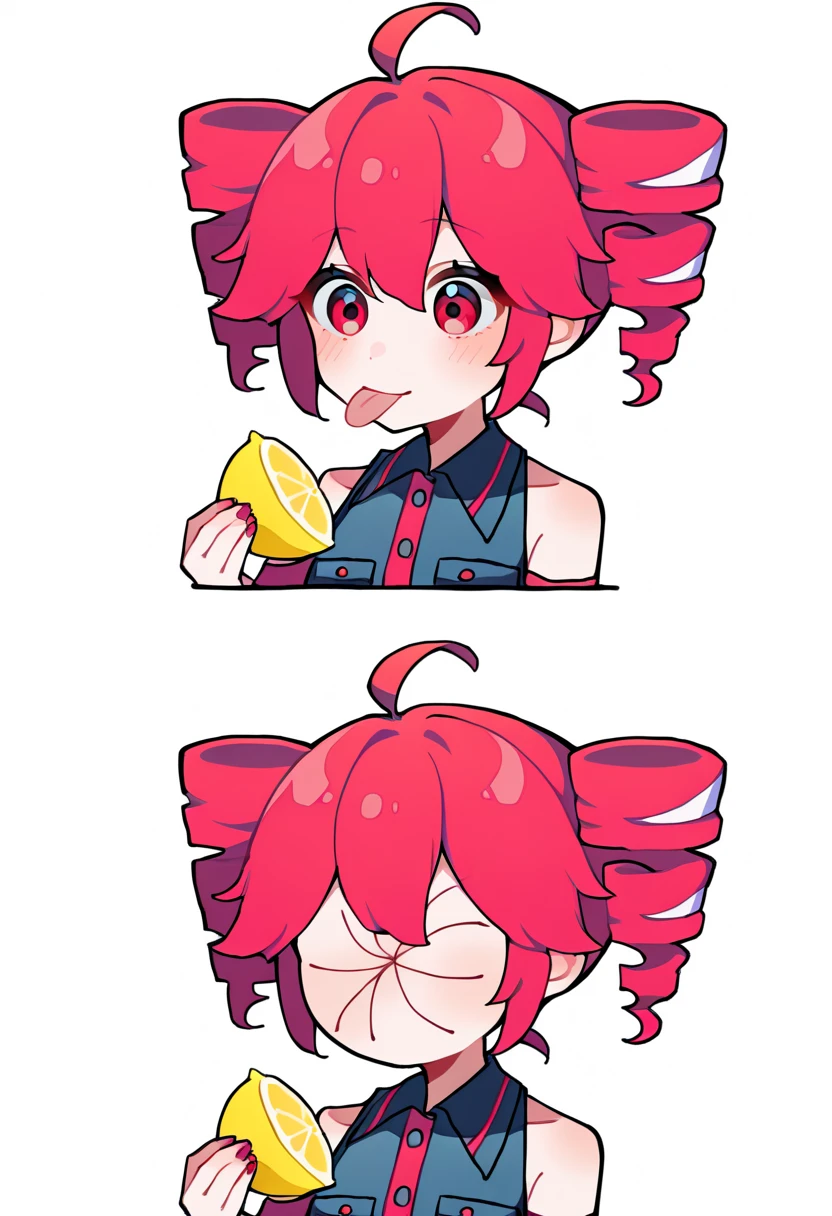 Trigger word: thour, holding, lemon, puckered face