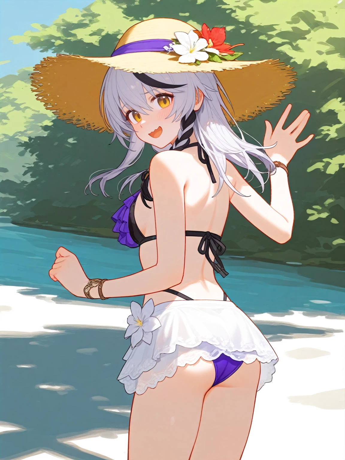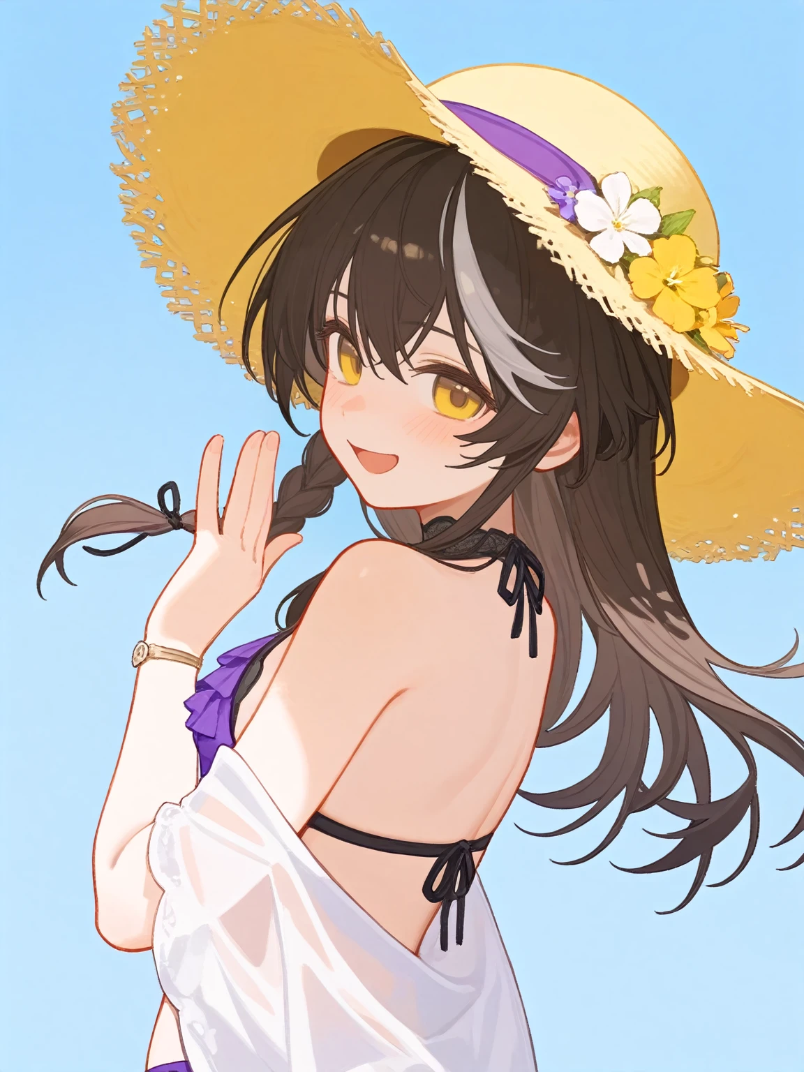 琴诺提示词:cherno_kegaard, cherno_kegaard-Enigma_(Tidal Whispers), White hair with a single brown forelock, braid, side braid,