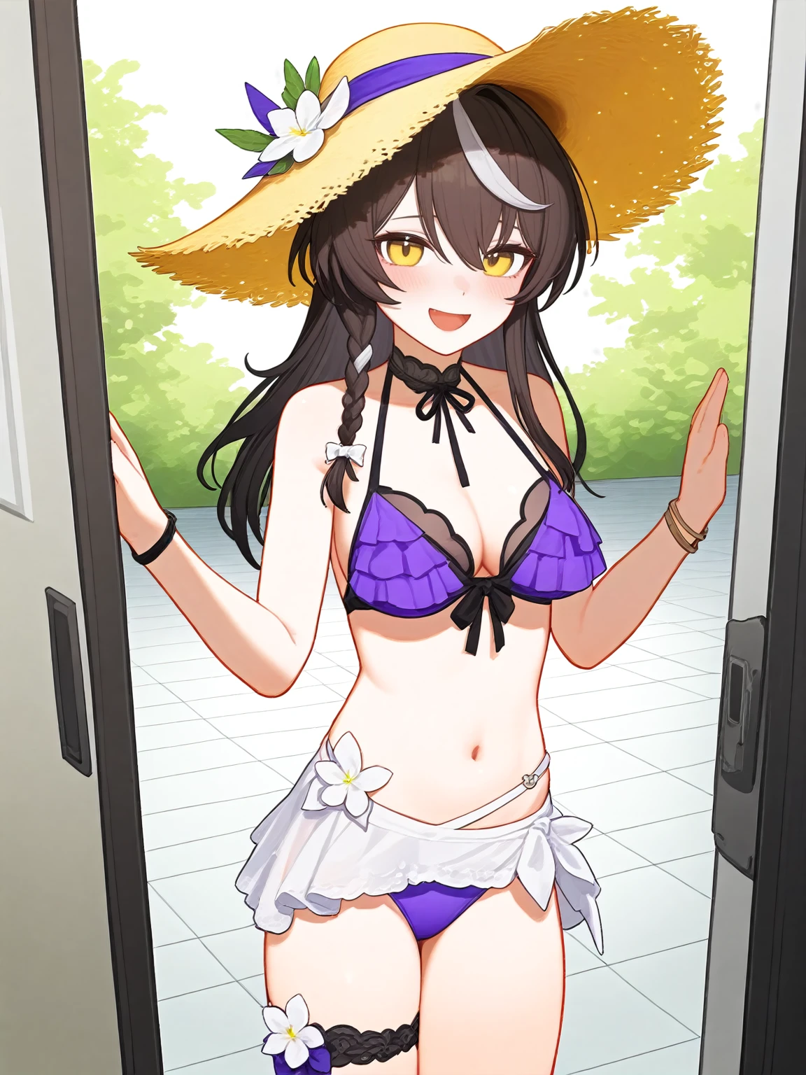 Merso prompt words: cherno_kegaard, cherno_kegaard-Enigma_(Tidal Whispers), Brown hair with a single white forelock, braid, side braid.