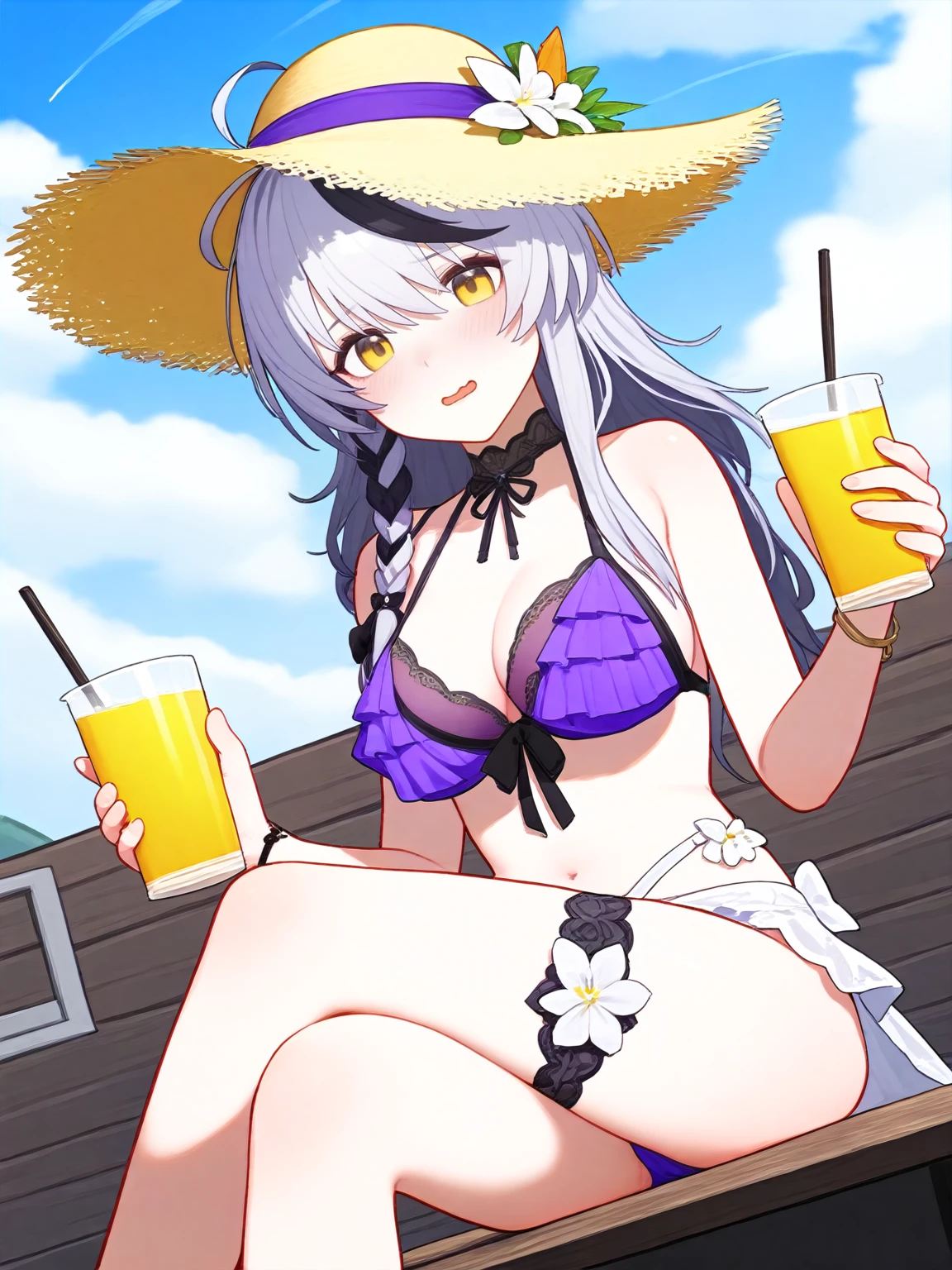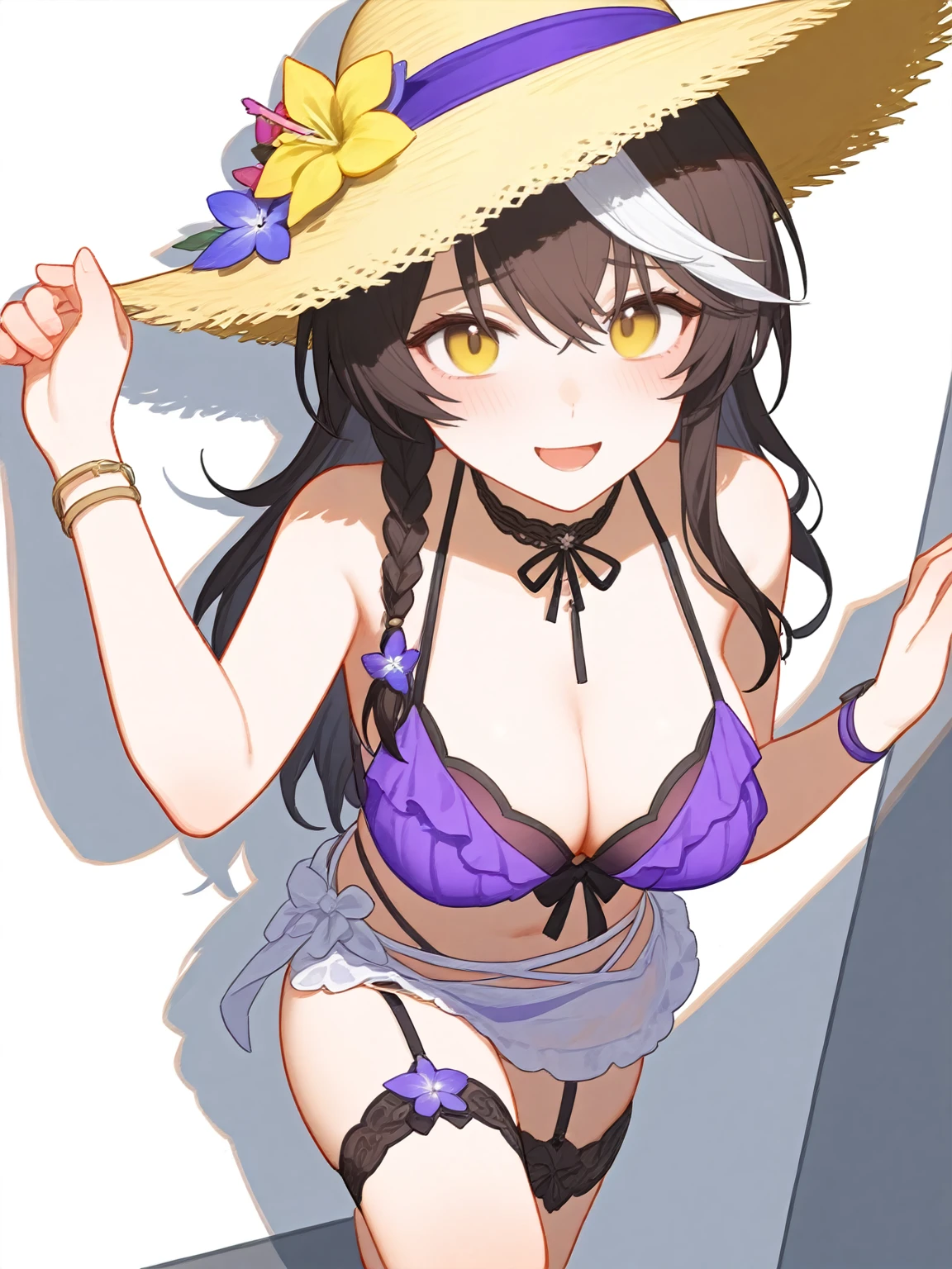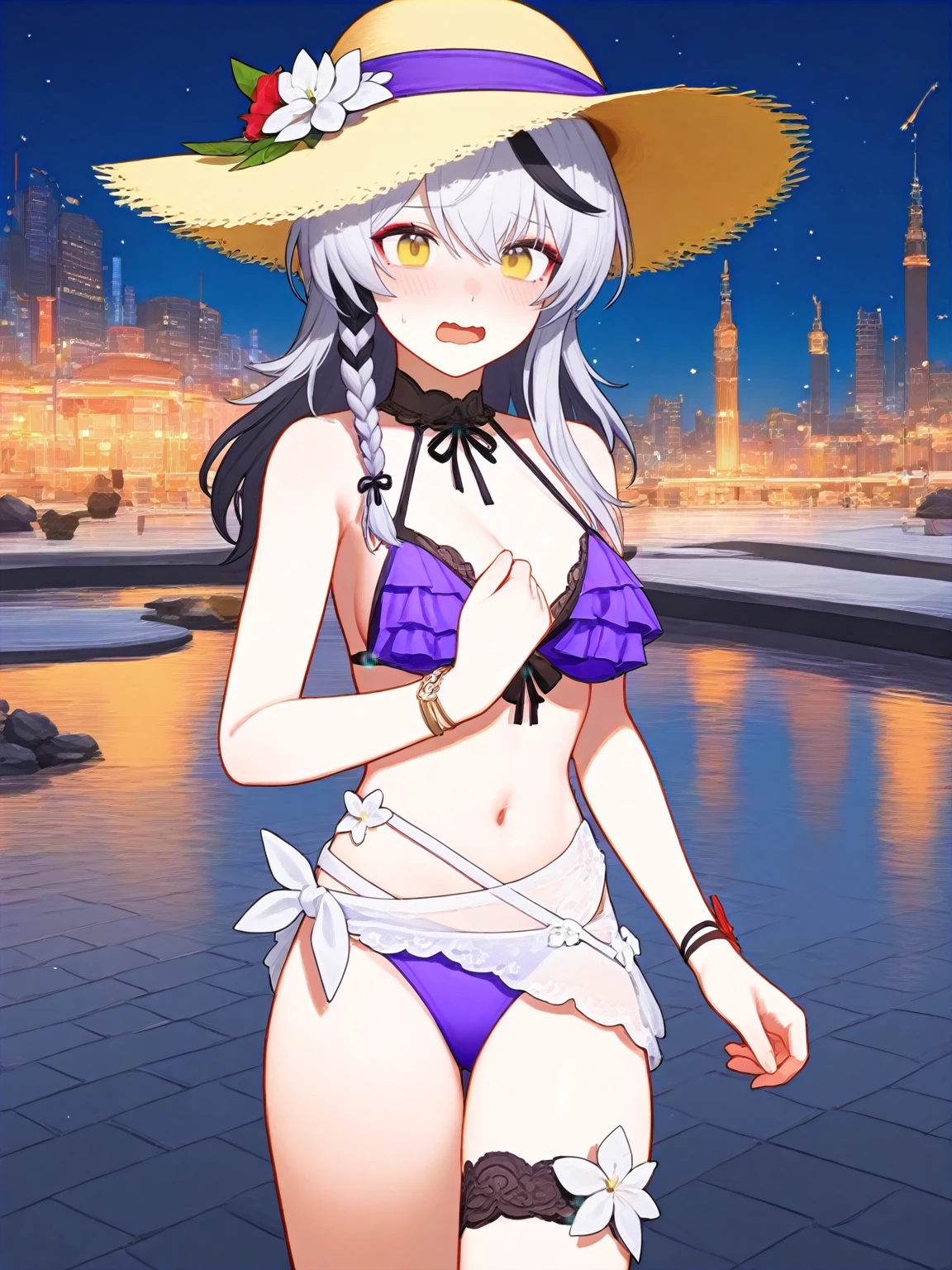 Cherno prompt words: cherno_kegaard, cherno_kegaard-Enigma_(Tidal Whispers), White hair with a single brown forelock, braid, side braid.
