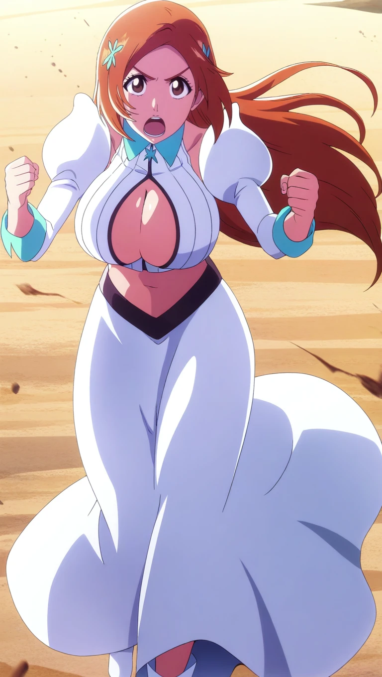 0r1h1m3 1n0u3, orange hair, long hair, brown eyes, hairpin,