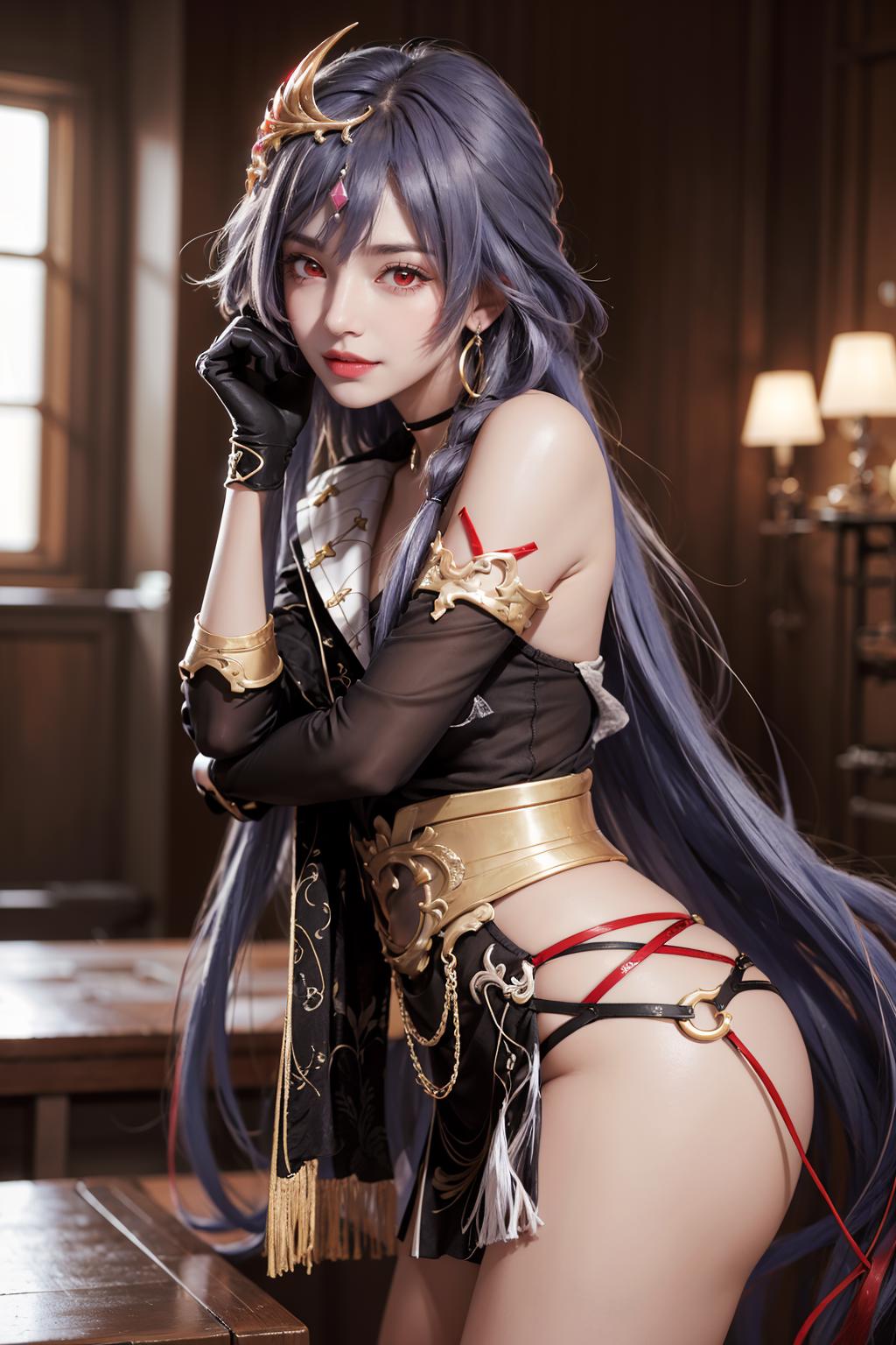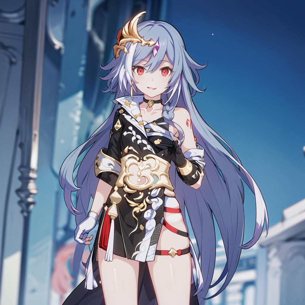 Senti can embody various outfits, but be sure to increase the weight to match her intricate forms properly and lower LoRA's weight to