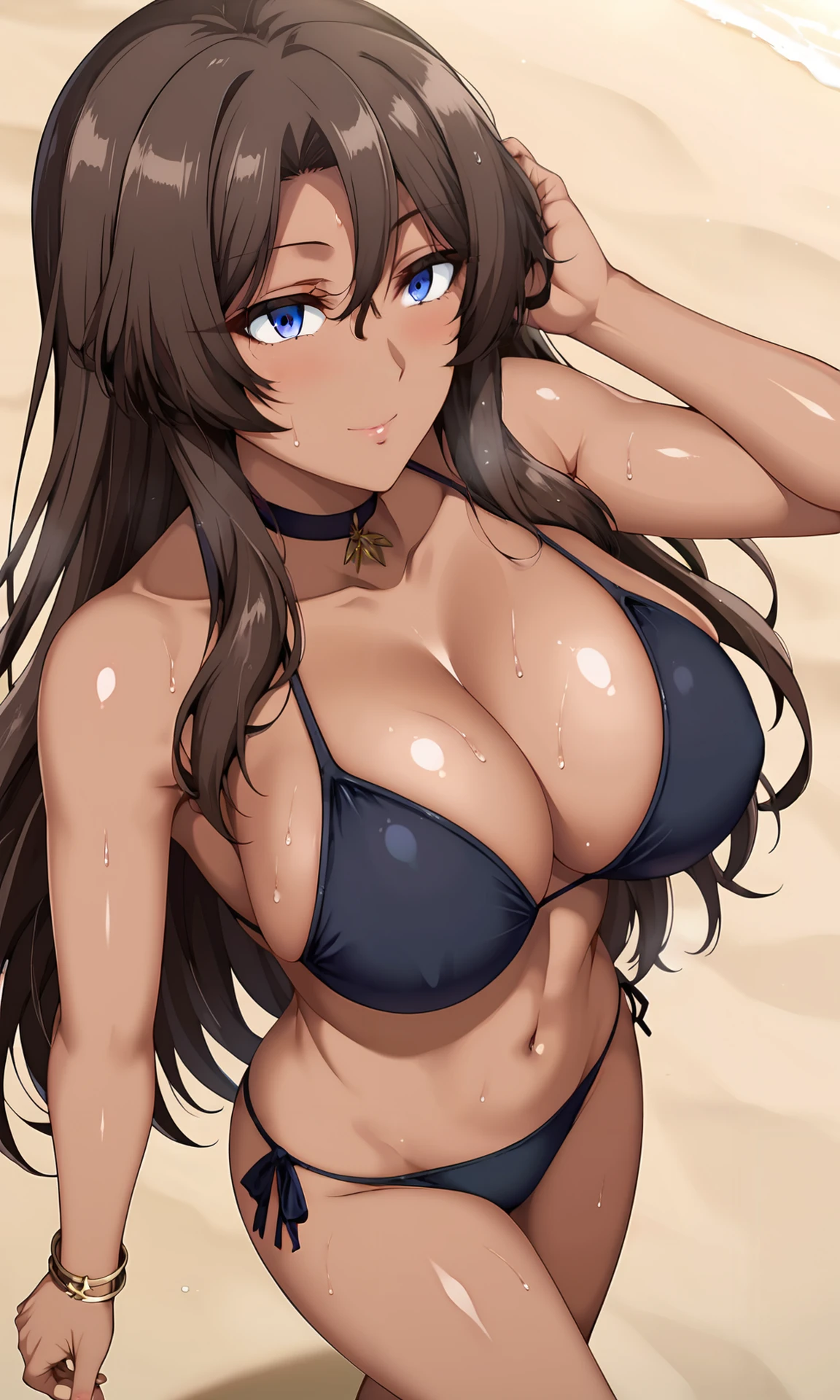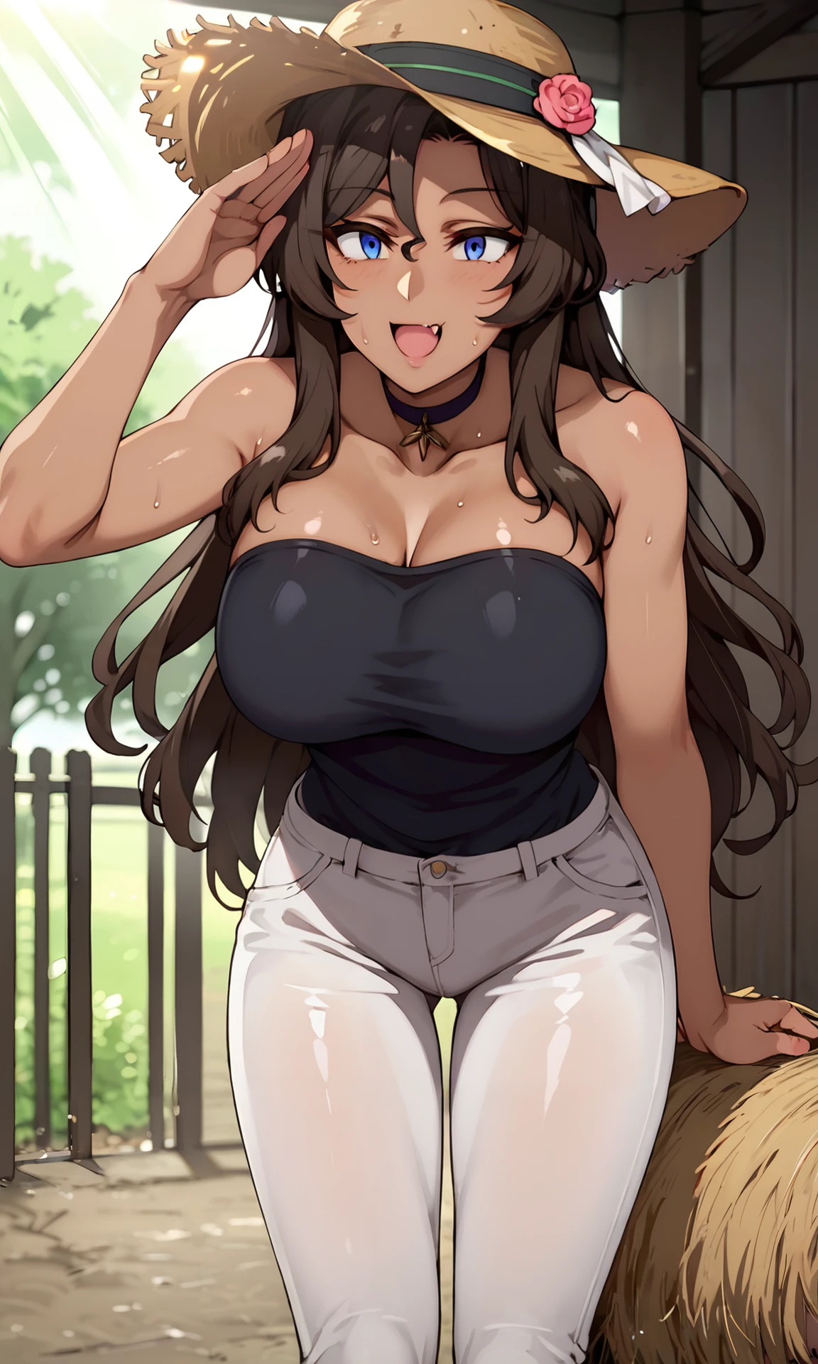 violawz, dark skin, choker, witch hat, long hair, blue eyes, large breasts