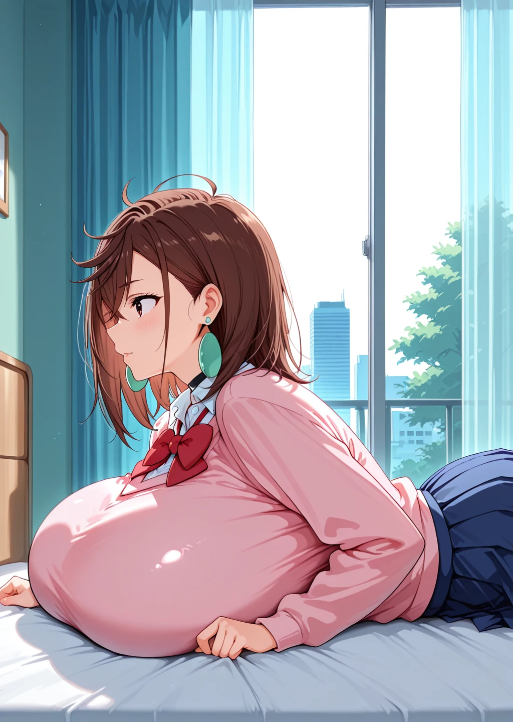breast_cushion, massive breasts, laying on breasts, breast cushion,