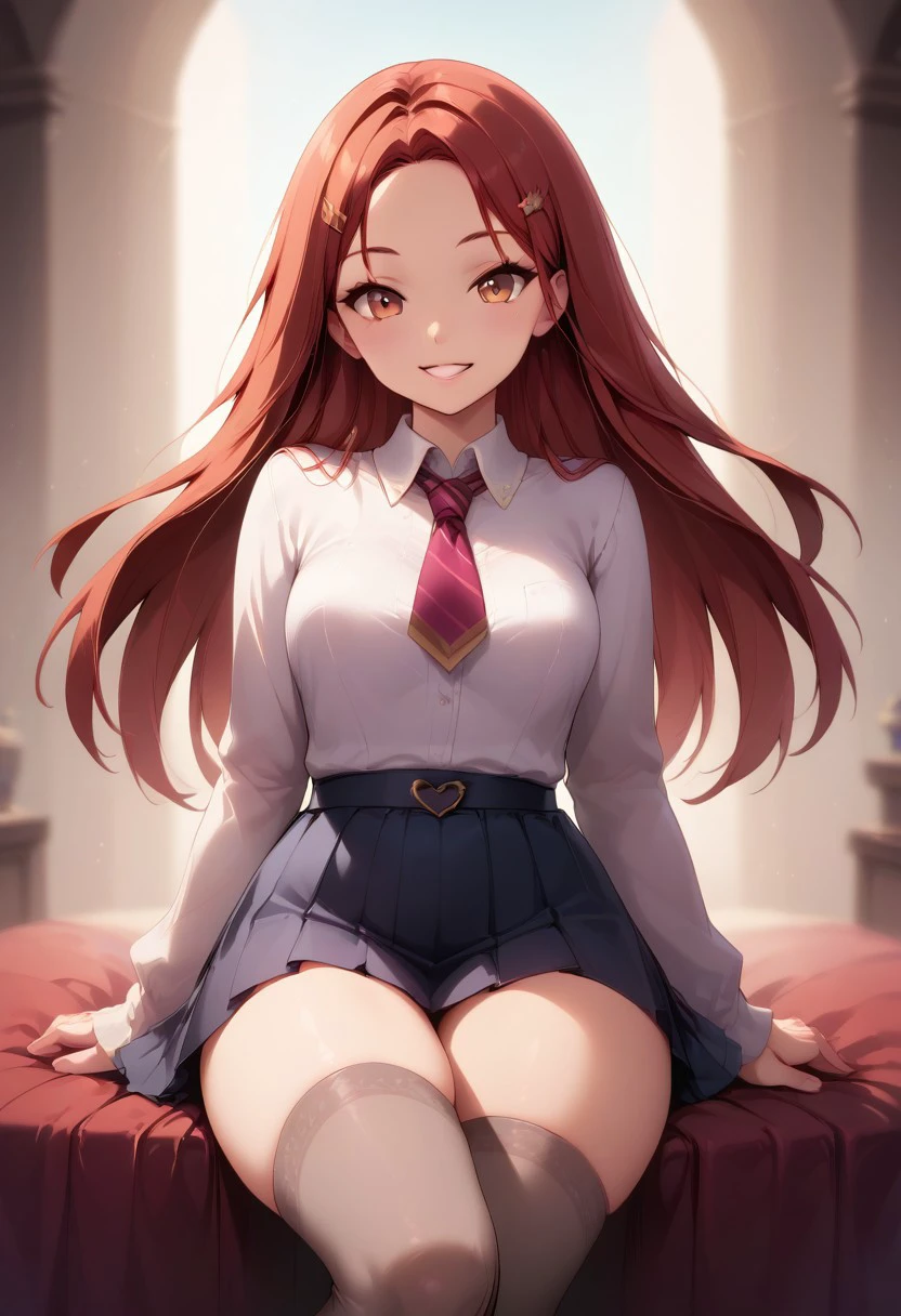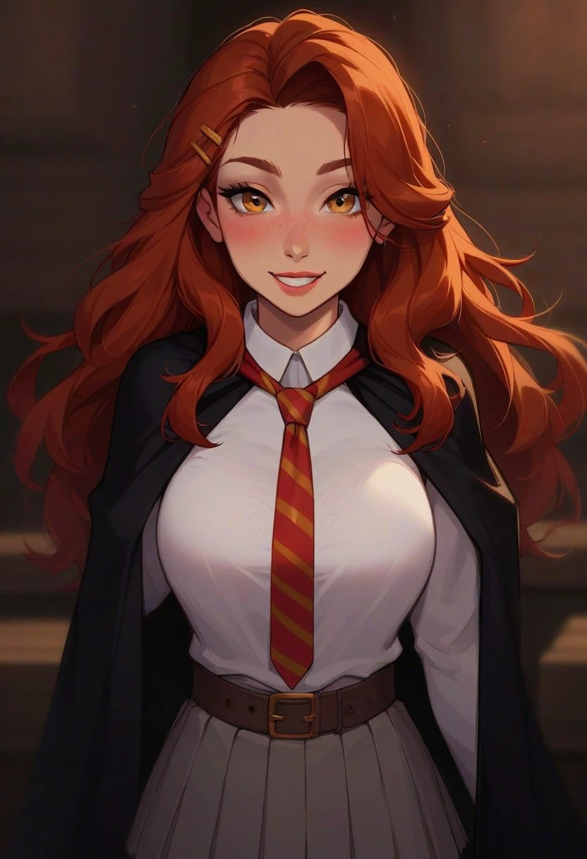 Optional Prompts for more stability: Hogwarts school uniform, white shirt, gray skirt,