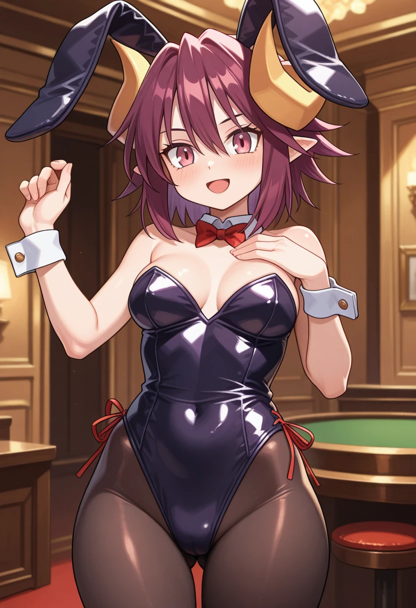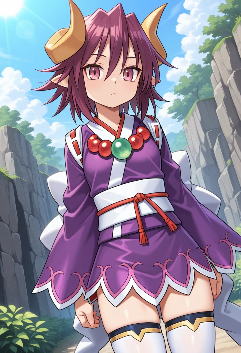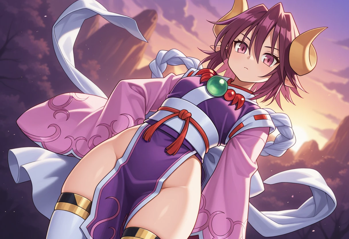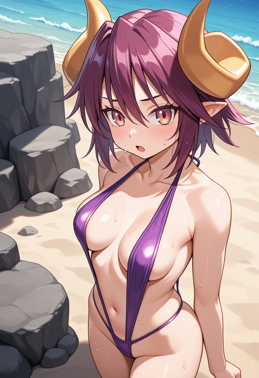 shion_shinra, purple hair, short hair, purple eyes, horns, pointy ears
