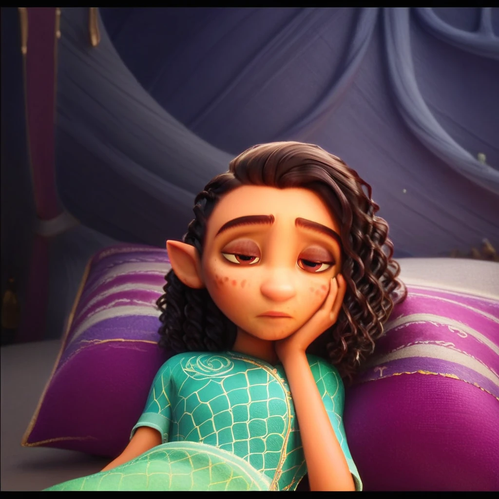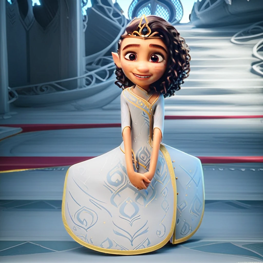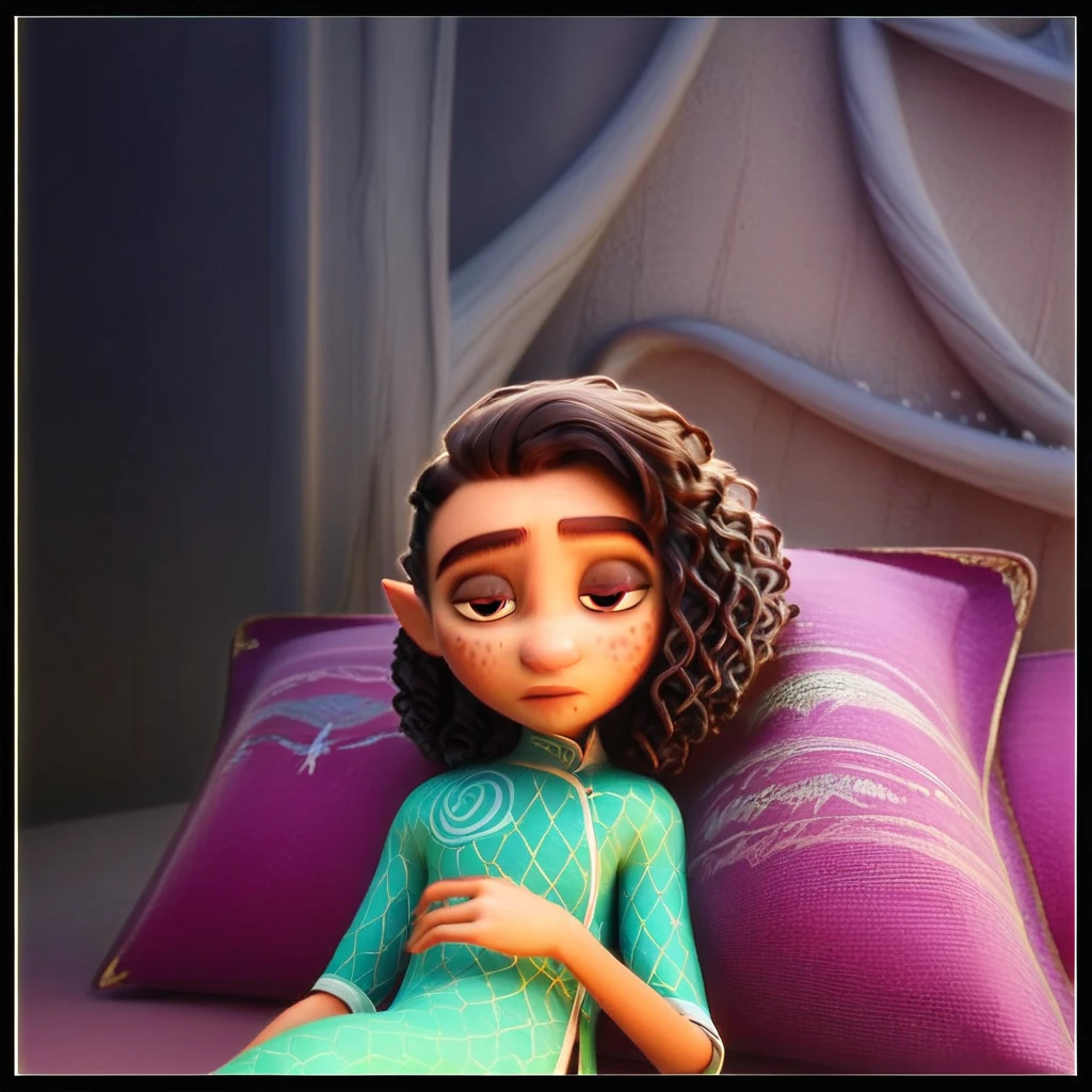 princessellian, dark brown hair, curly hair, brown eyes, face freckles, spellbound
