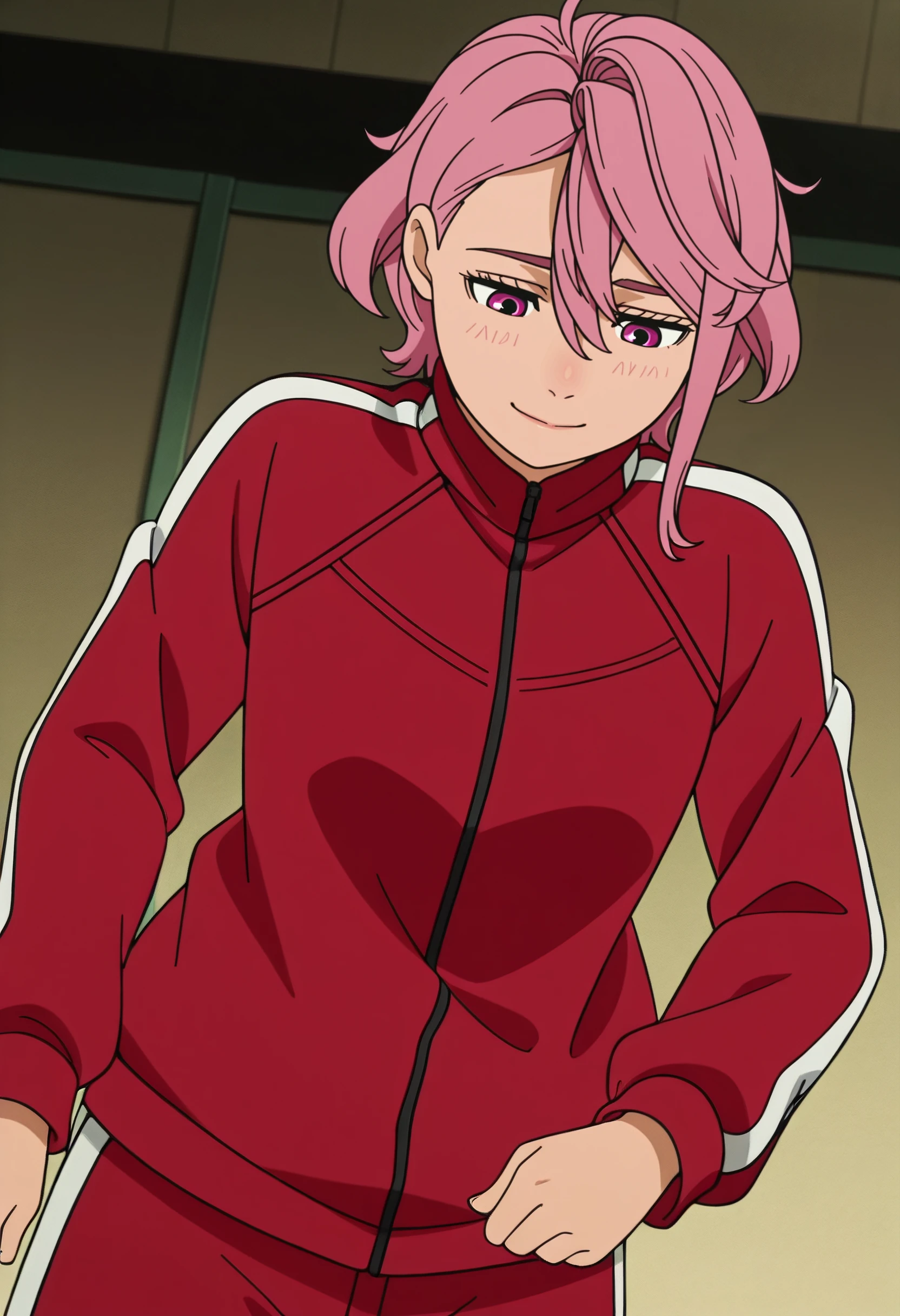 AiraTracksuit, red jacket, track jacket, red track suit, long sleeves, red pants, track pants, ahoge, zipper,