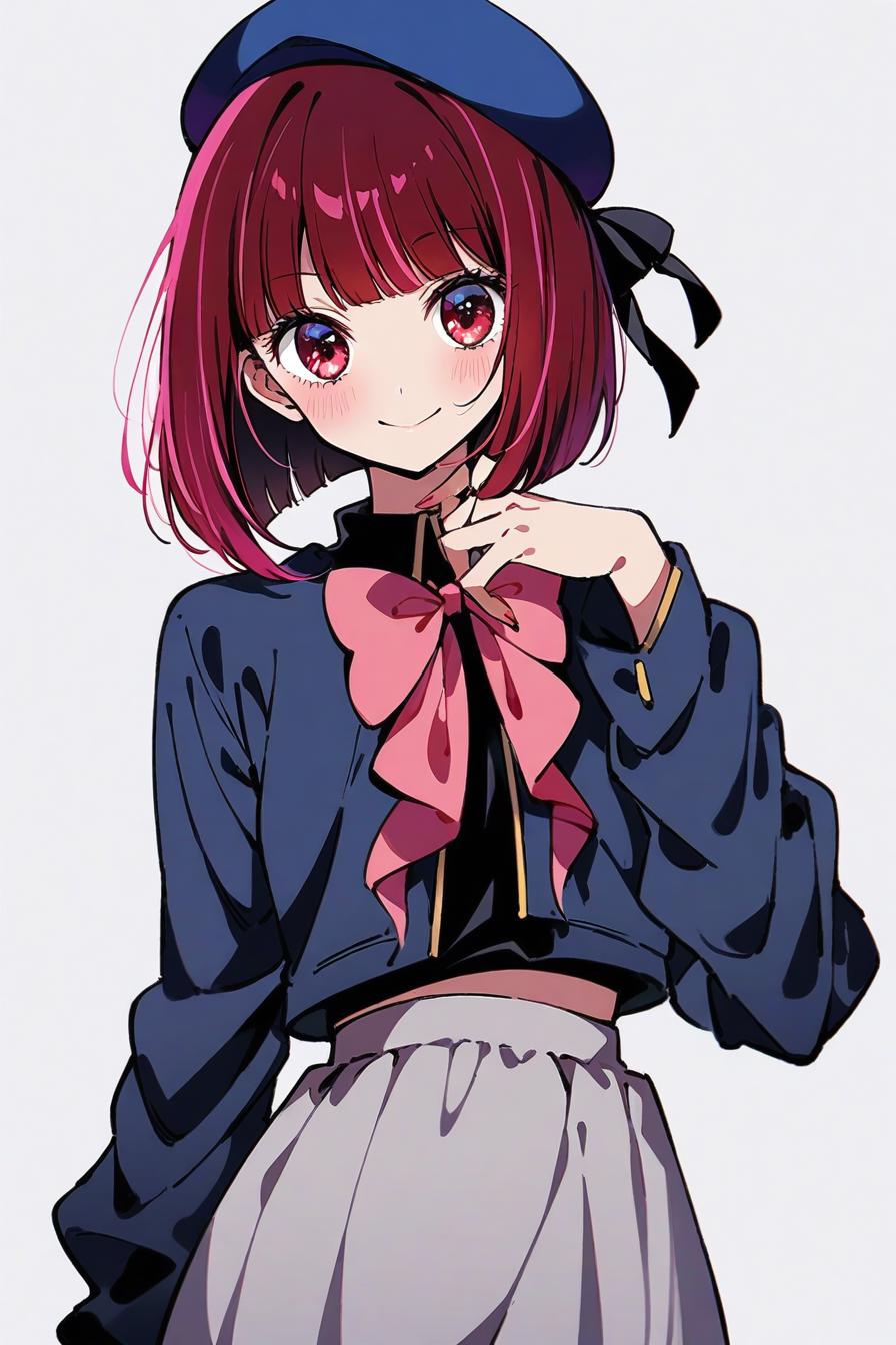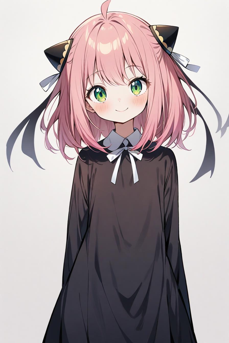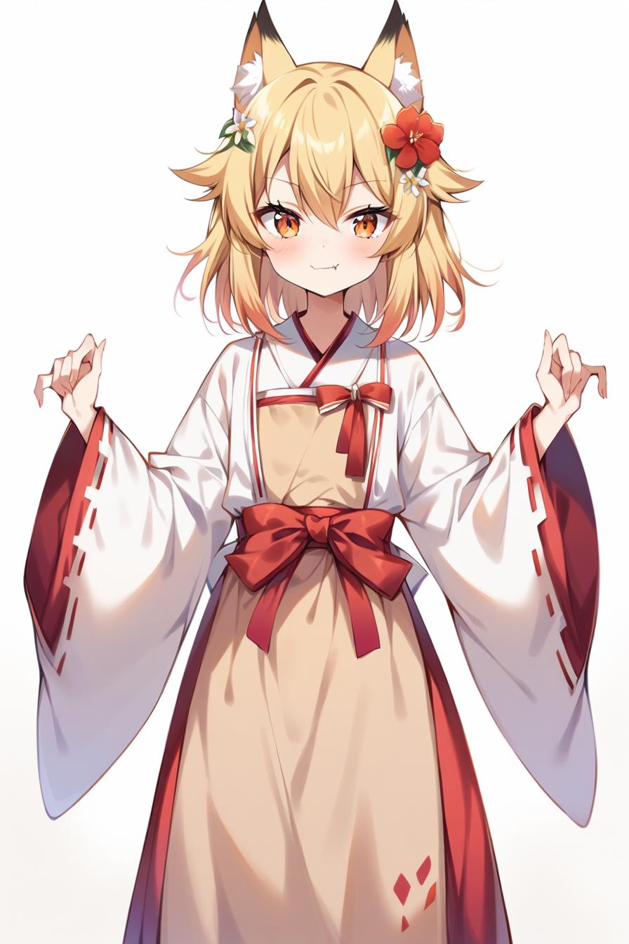 ,(smile:0.7), (cowboy shot:0.7), (white background:1.1), simple background, standing, straight-on, skinny."
