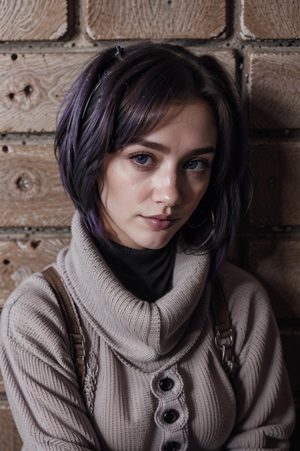 Another Faceapp method, trying to do an emo-girl twitch-streamer type, with soft purple hair.