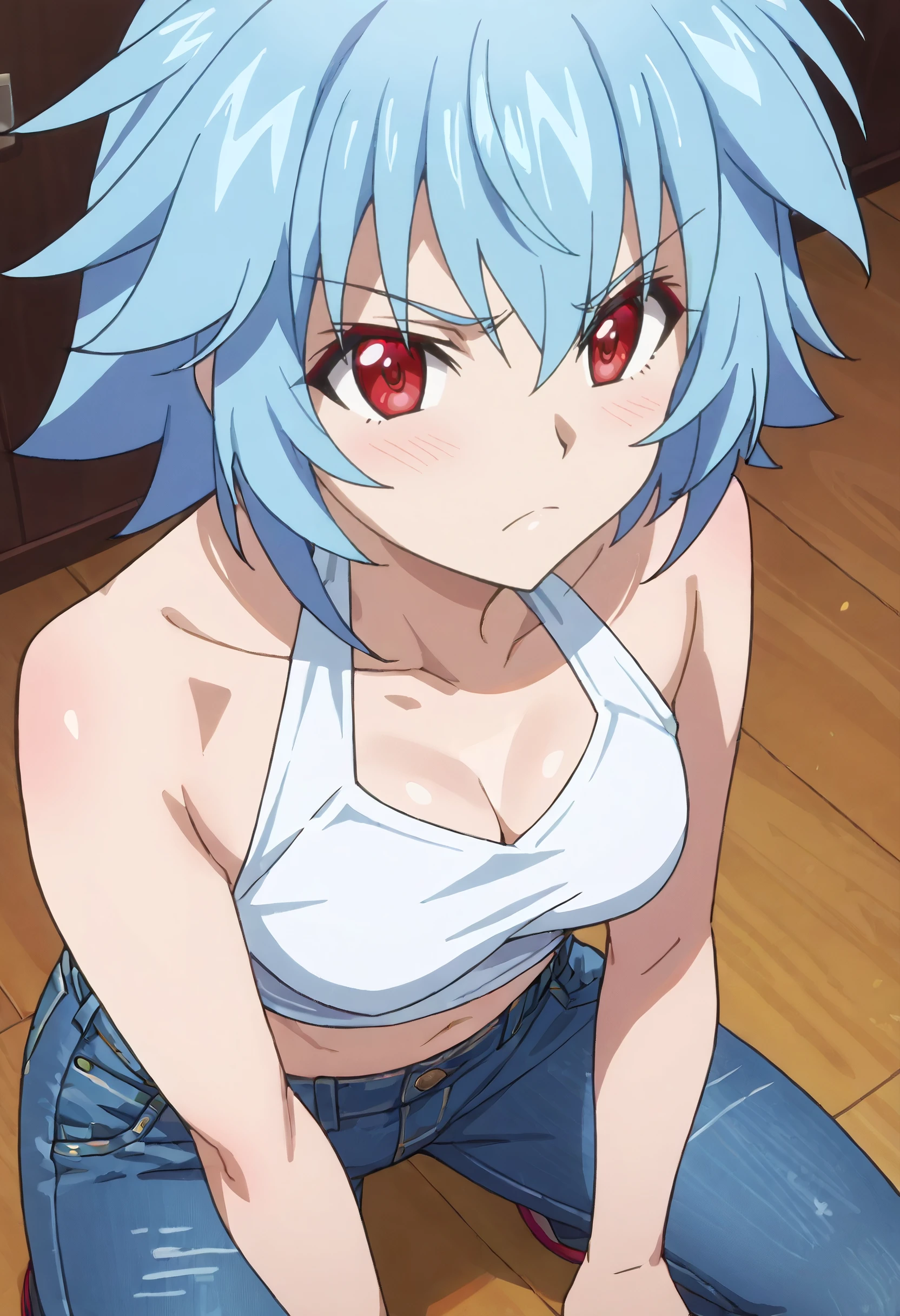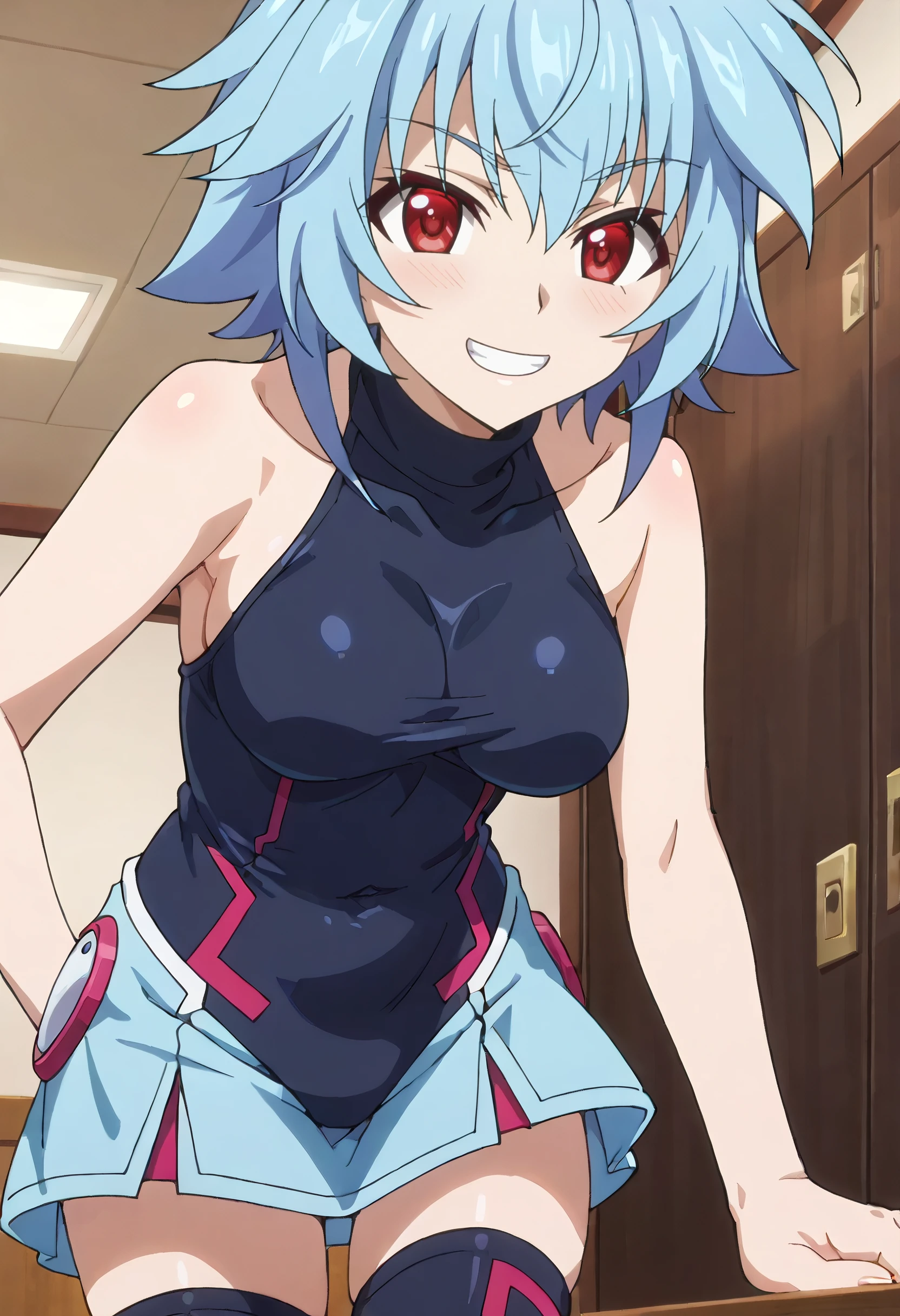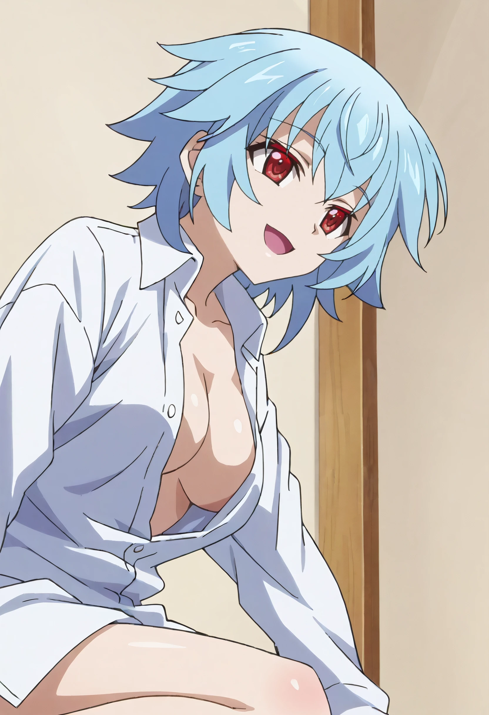IStTatenashi, short hair, blue hair, red eyes, hair between eyes,