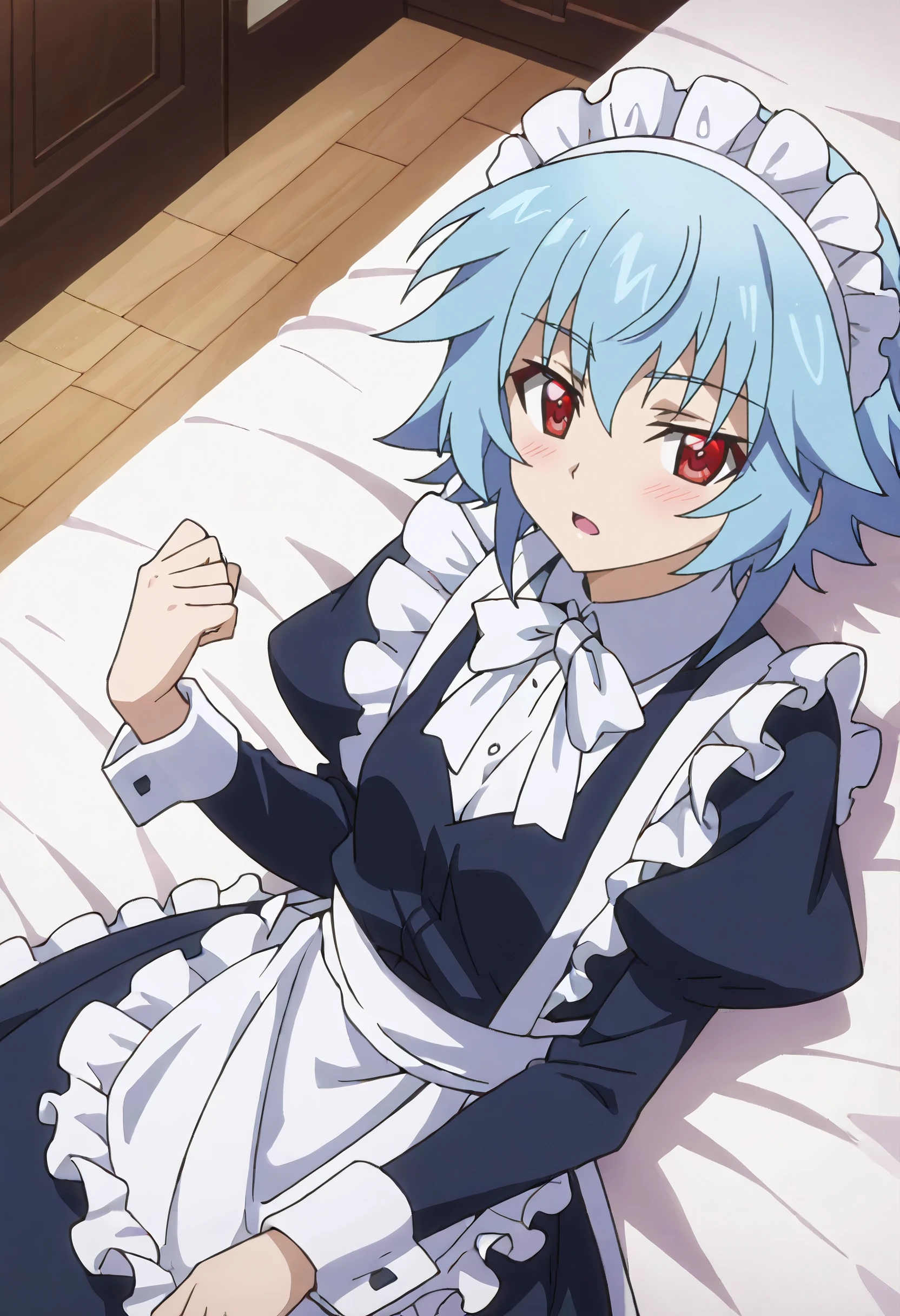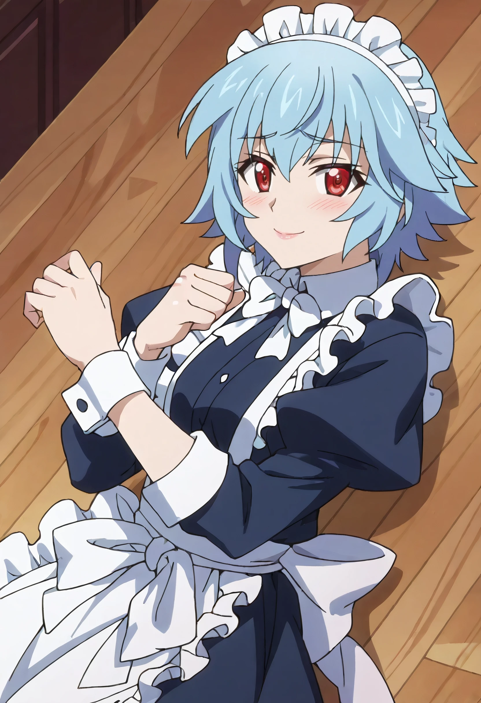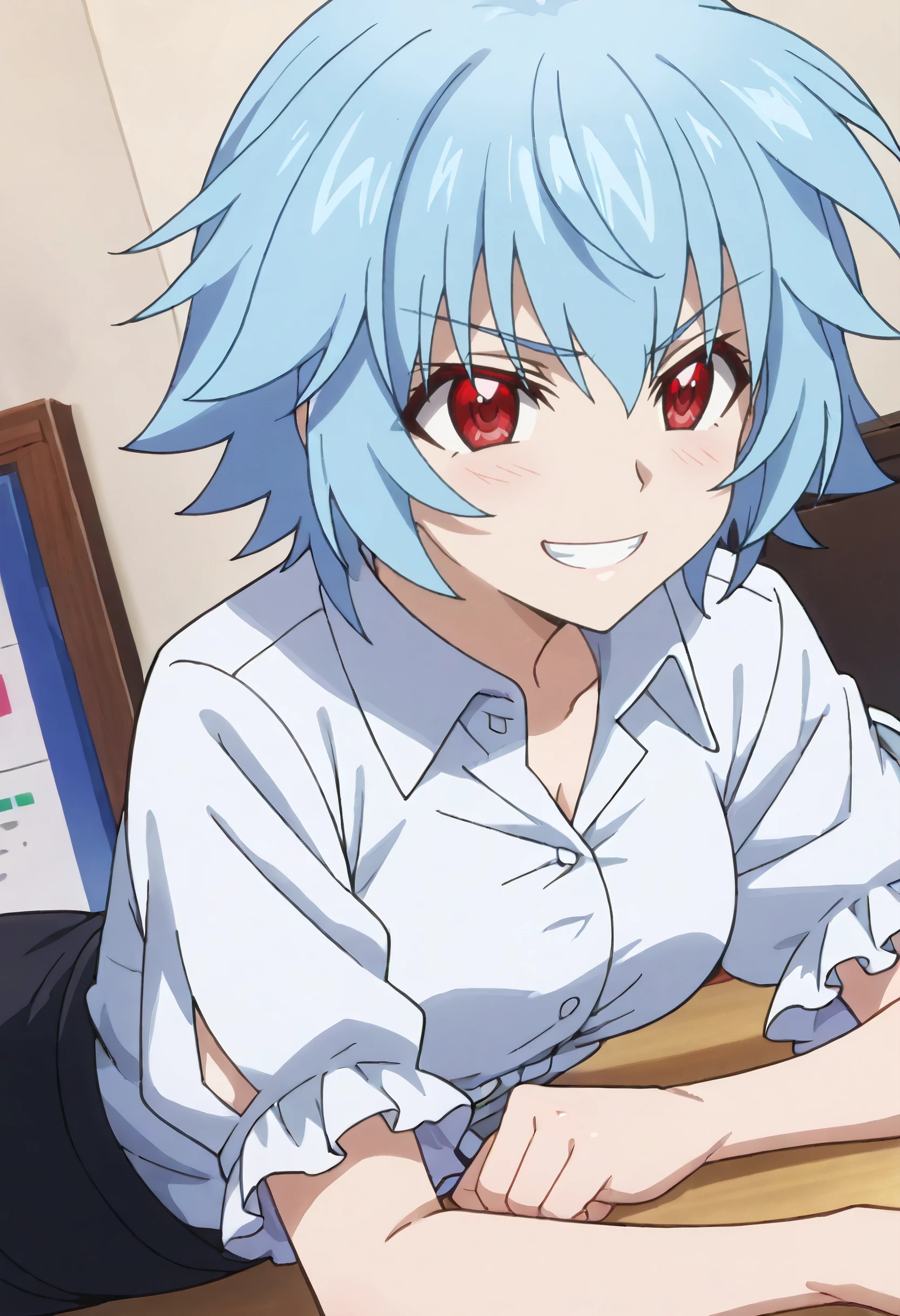 IStTatenashi, short hair, blue hair, red eyes, hair between eyes,