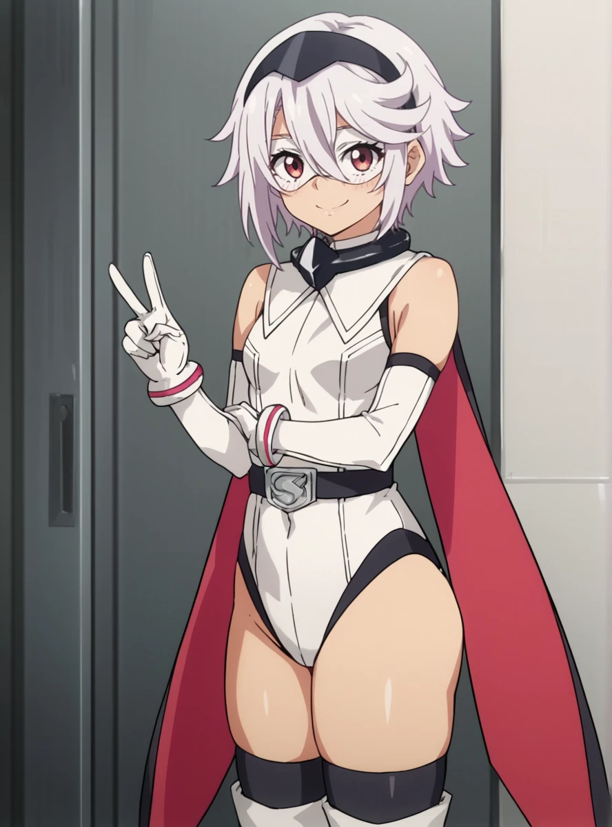 prompts:, gloves, elbow gloves, thighhighs, white gloves, short hair, leotard,, red eyes
