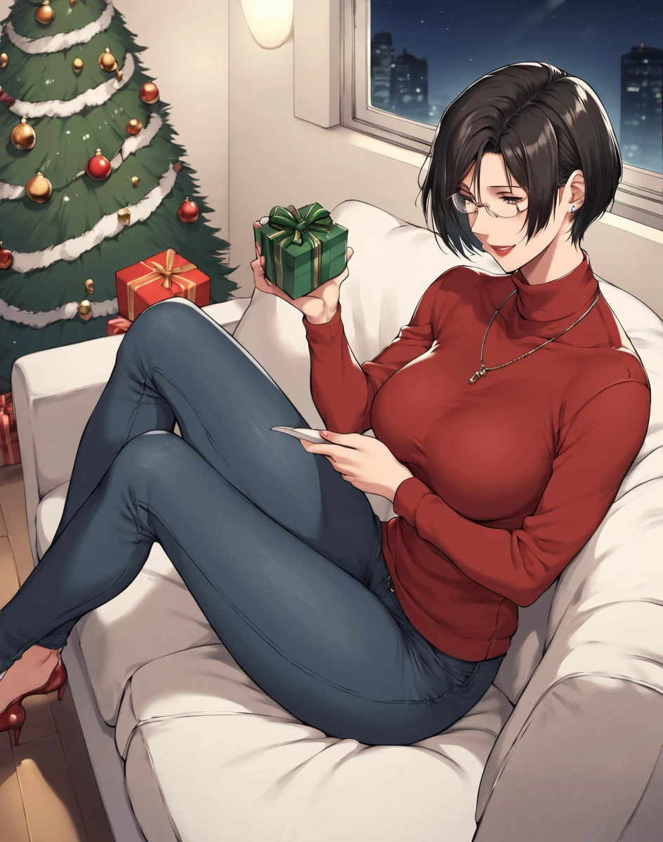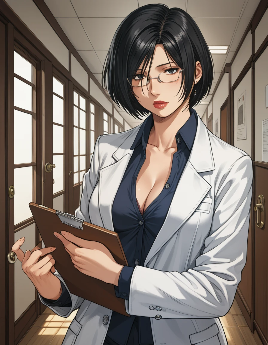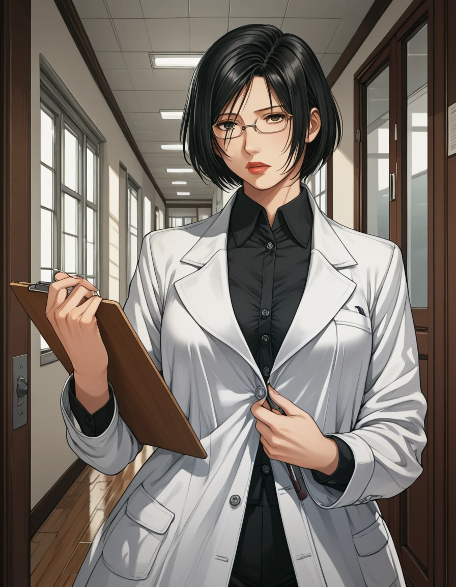 shiglawo, glasses, full lips, black hair, short hair, lipstick