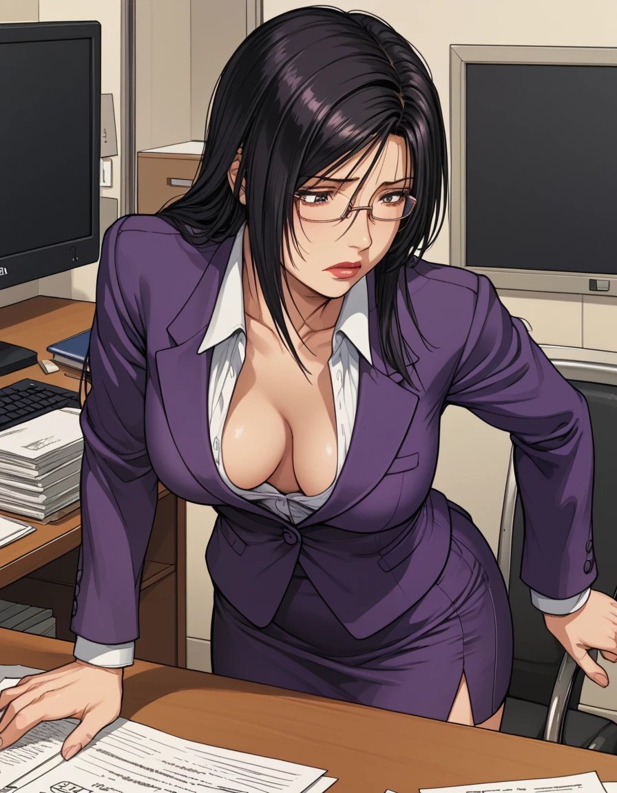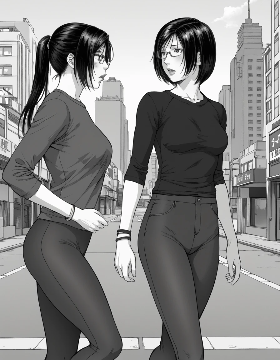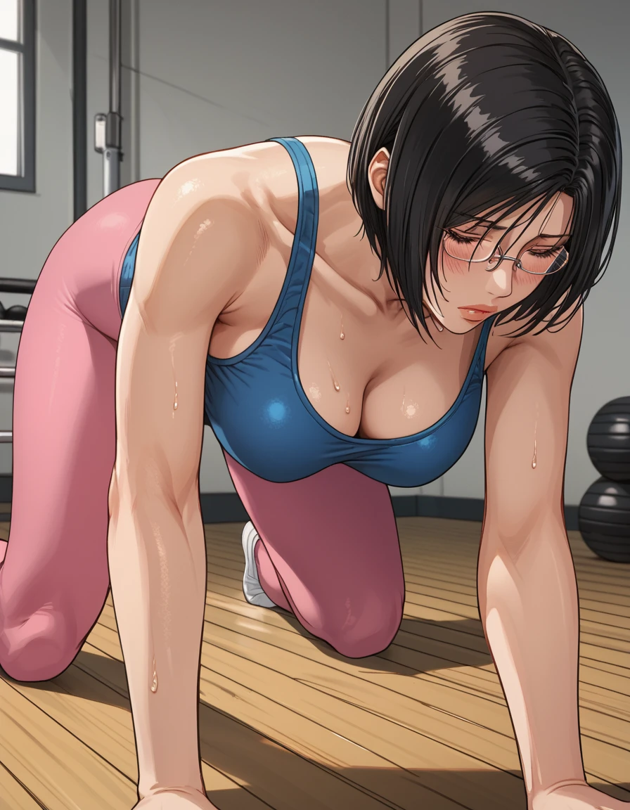 shiglawo, glasses, full lips, black hair, short hair, lipstick