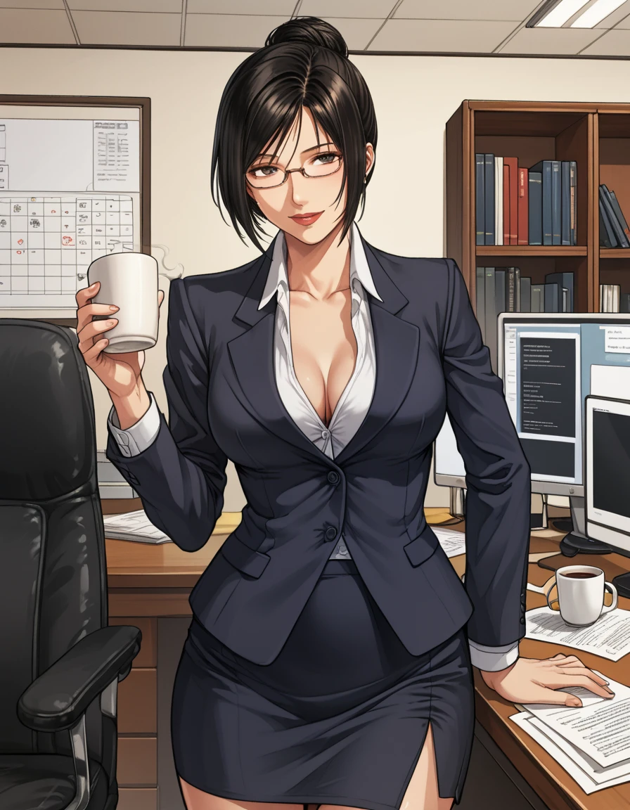Limitations: This Lora isn't terribly flexible and greatly favors frontal shots, dark hair, collared shirts, blazers/lab coats, and the same bangs. If you want to change any of that, be sure to add such tokens to your negatives and adjust token strength as needed. While the training data was chock-full of greyscale and monochrome images, it should be fine with color but add those tokens to negatives if it's a problem