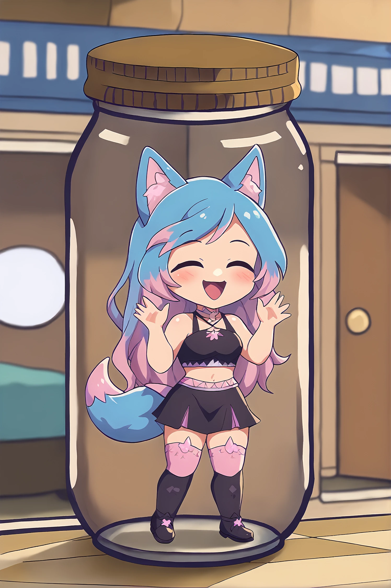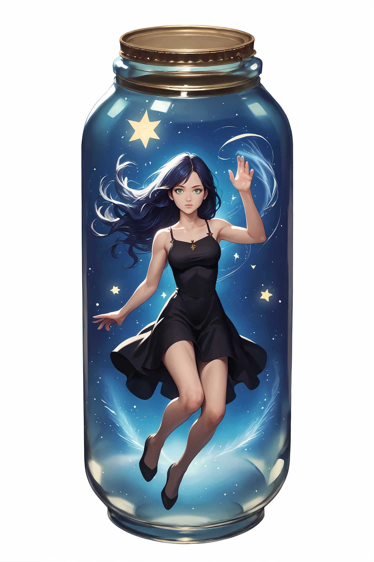 The base model already has an idea what in a jar means, but it doesn't really manage to properly put characters into the jar. Thus, I made this LoRA to allow for more consistent results. I have not yet managed to figure out a way to tell the model to partially fill the jar with a liquid...maybe I'll come back to this in the future.