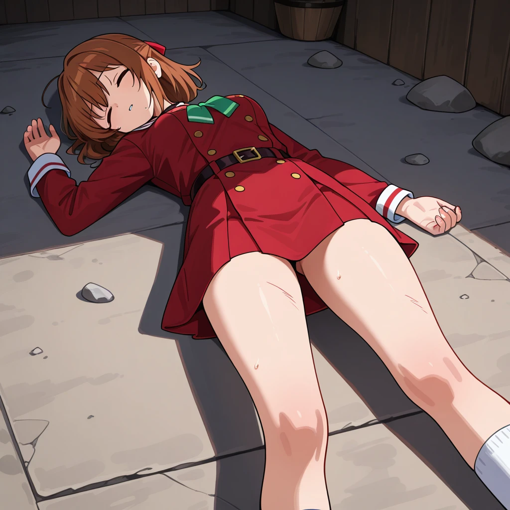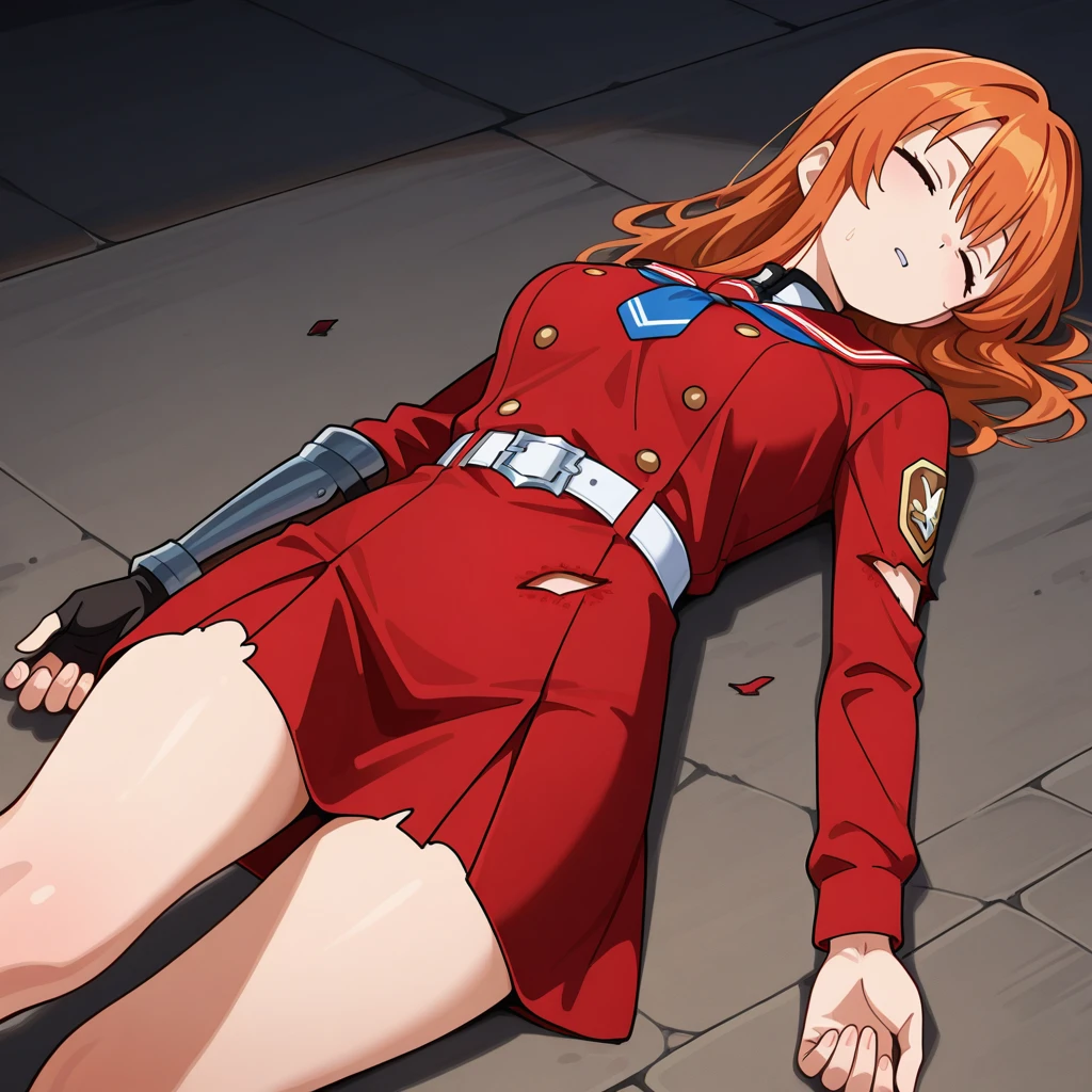 DefeatPoseIL, 1girl, solo, unconscious, defeat, lying, on back