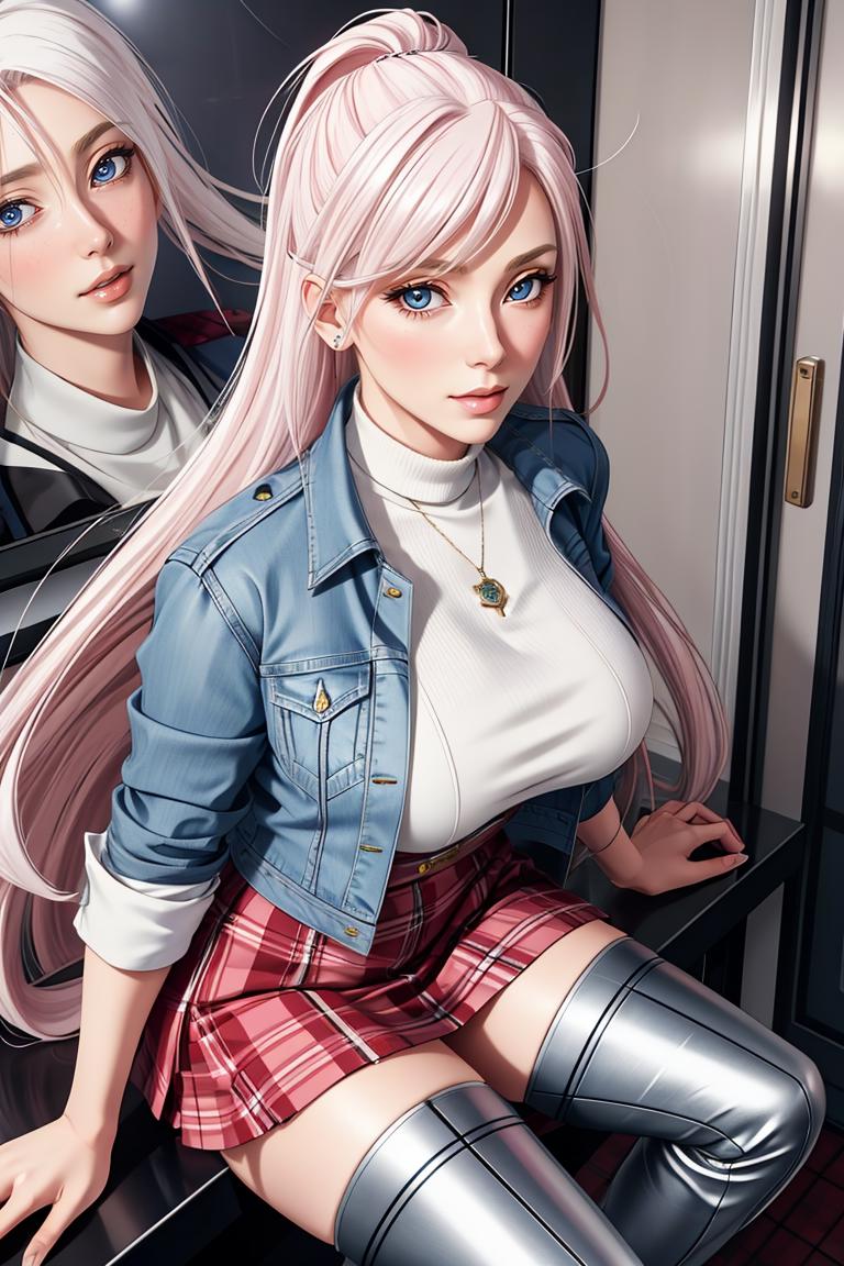 1girl,long hair, white hair, pink hair, blue eyes