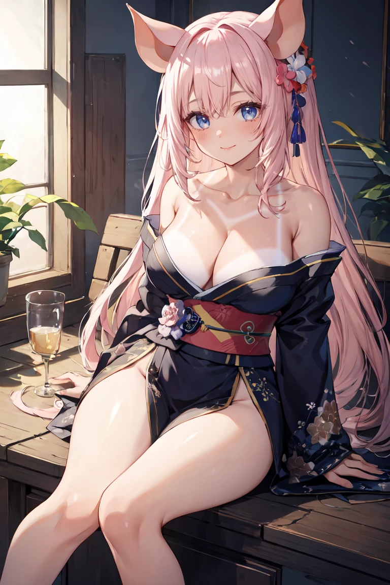 zaiyukirose, pig ears, long hair, large breasts, tanlines