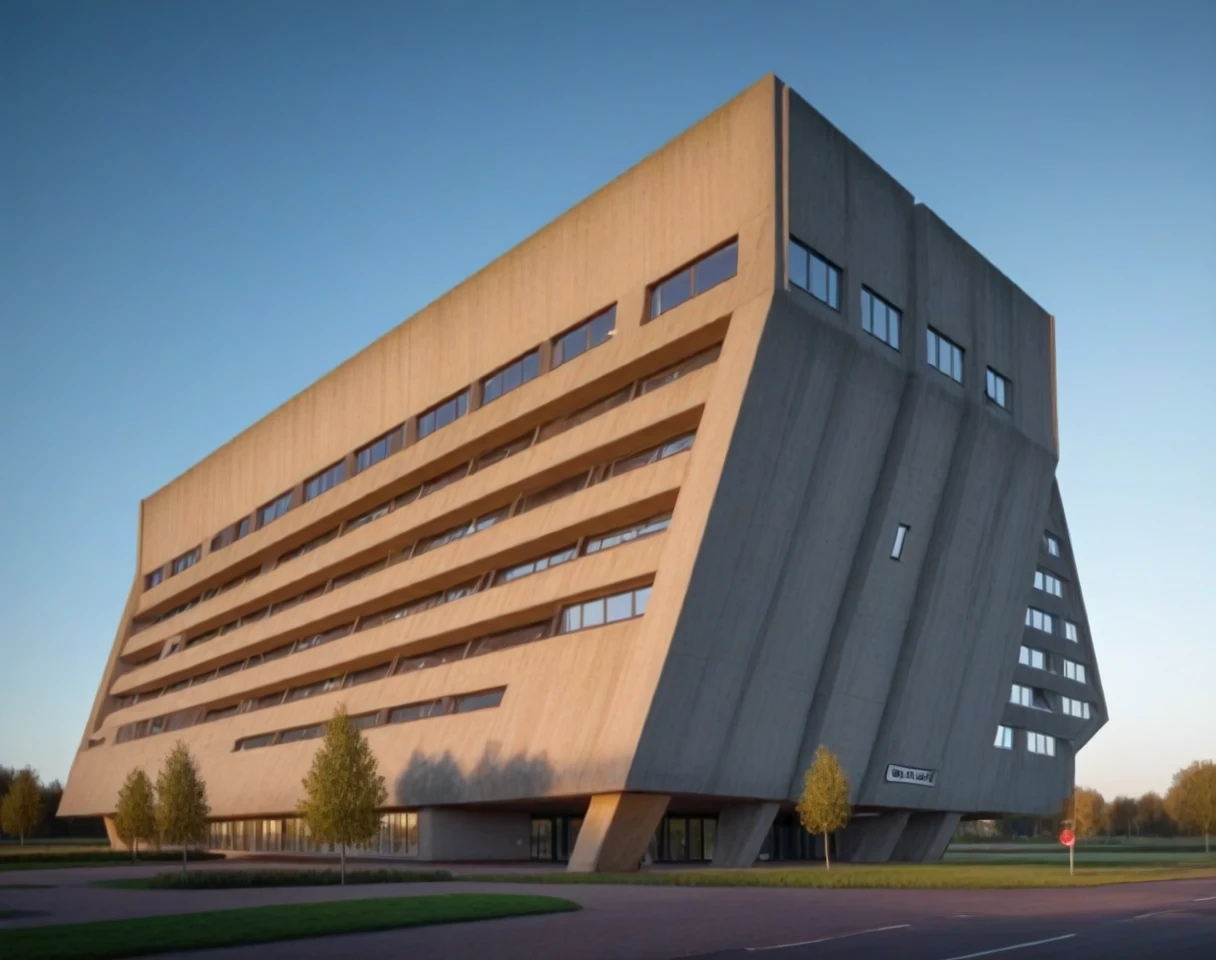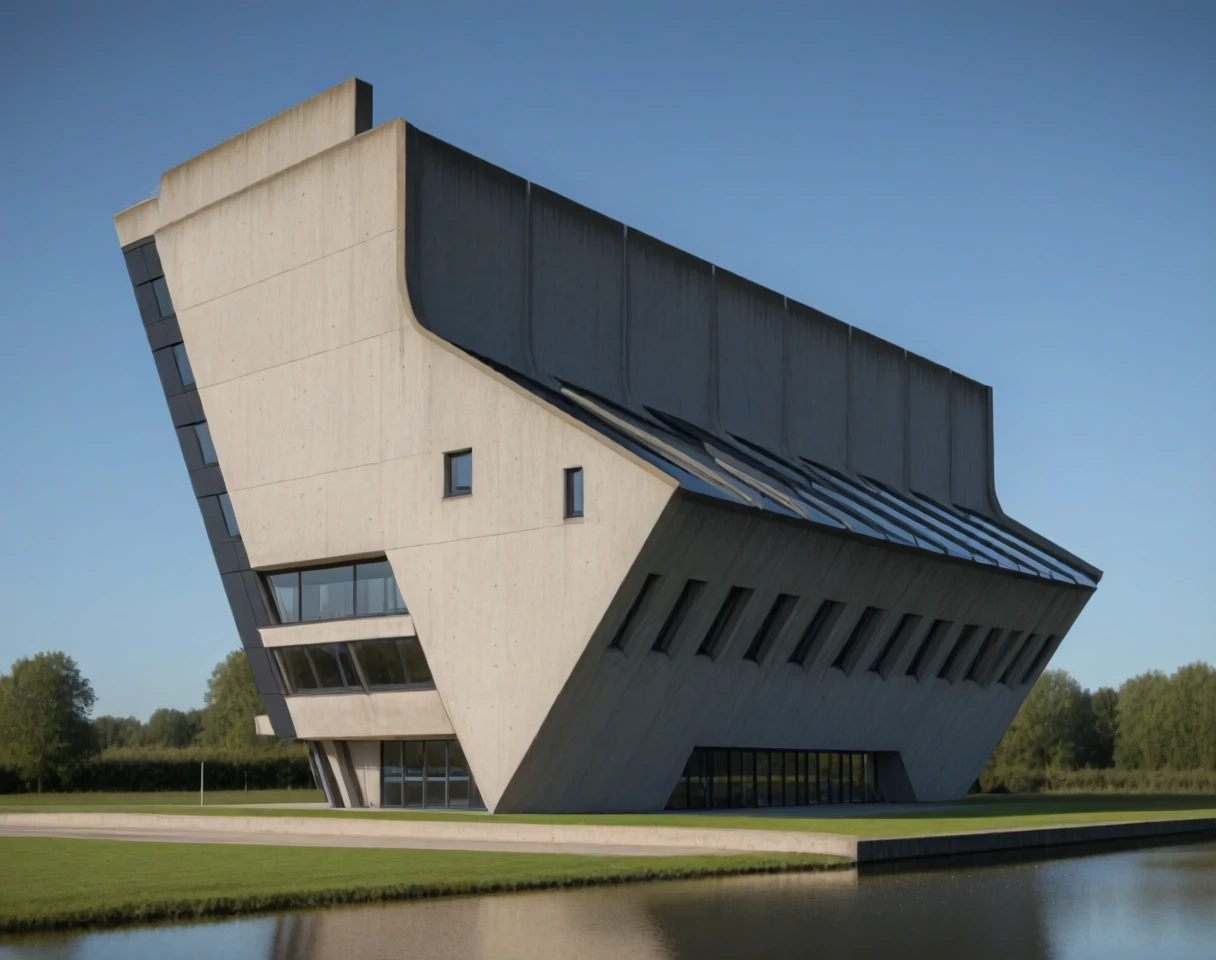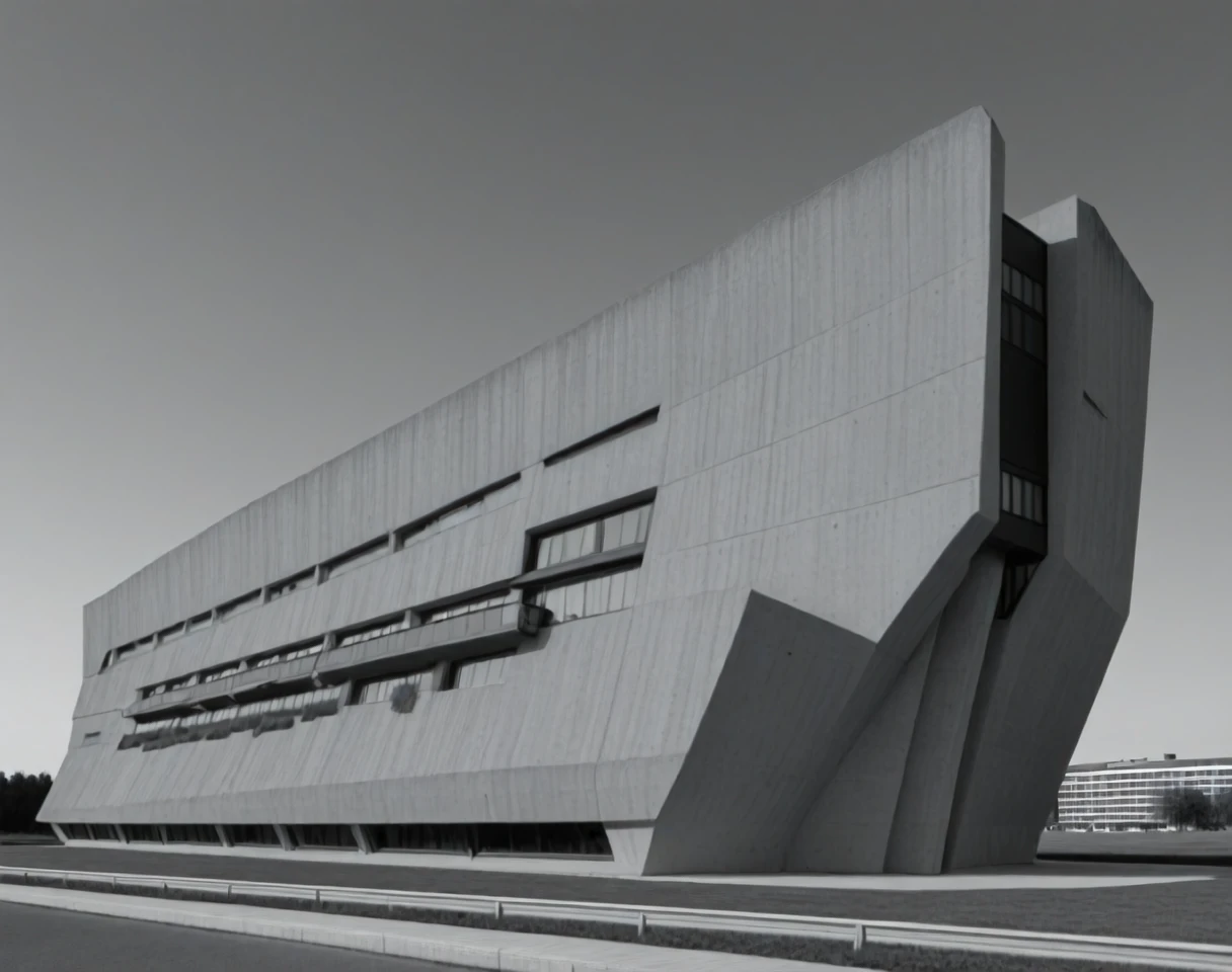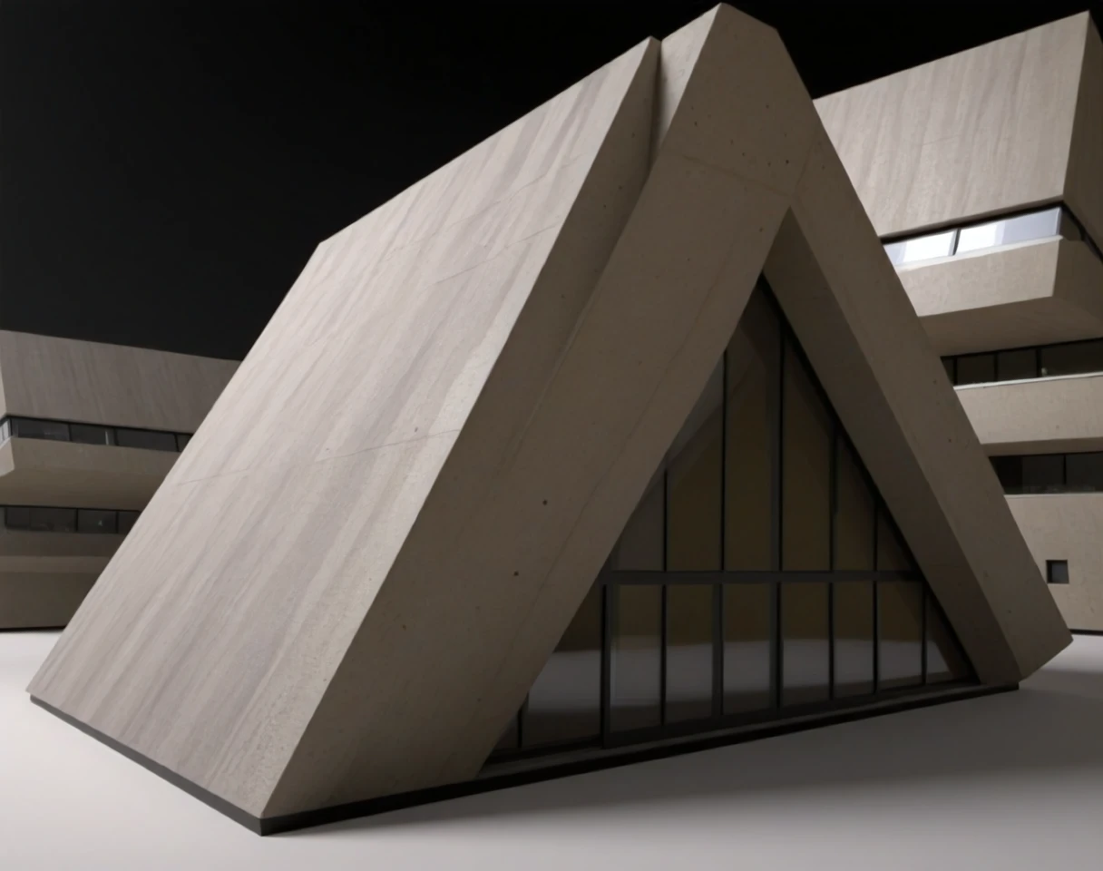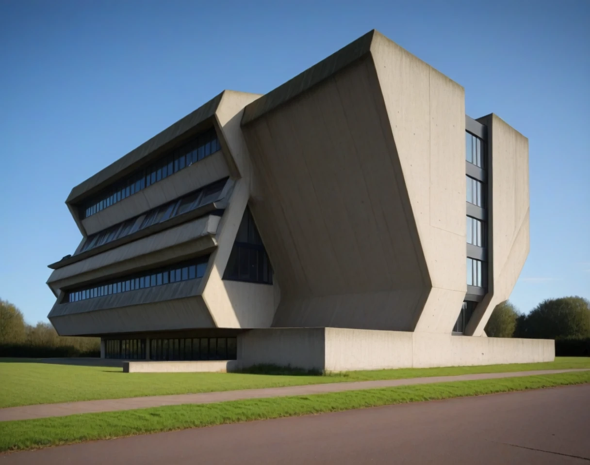 This is an SDXL lora for angular style Brutalist buildings. By angular, I mean buildings with sloped angular facades and / or shapes. The slope could either angle out or away or both.