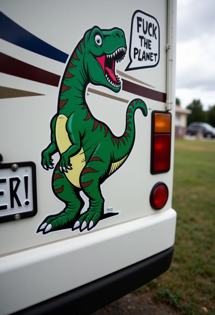 Let the world know how you really feel about _____! Generate cartoon-style bumper stickers using this FLUX finetune model to deliver your important message every day to other commuters stuck behind you.
