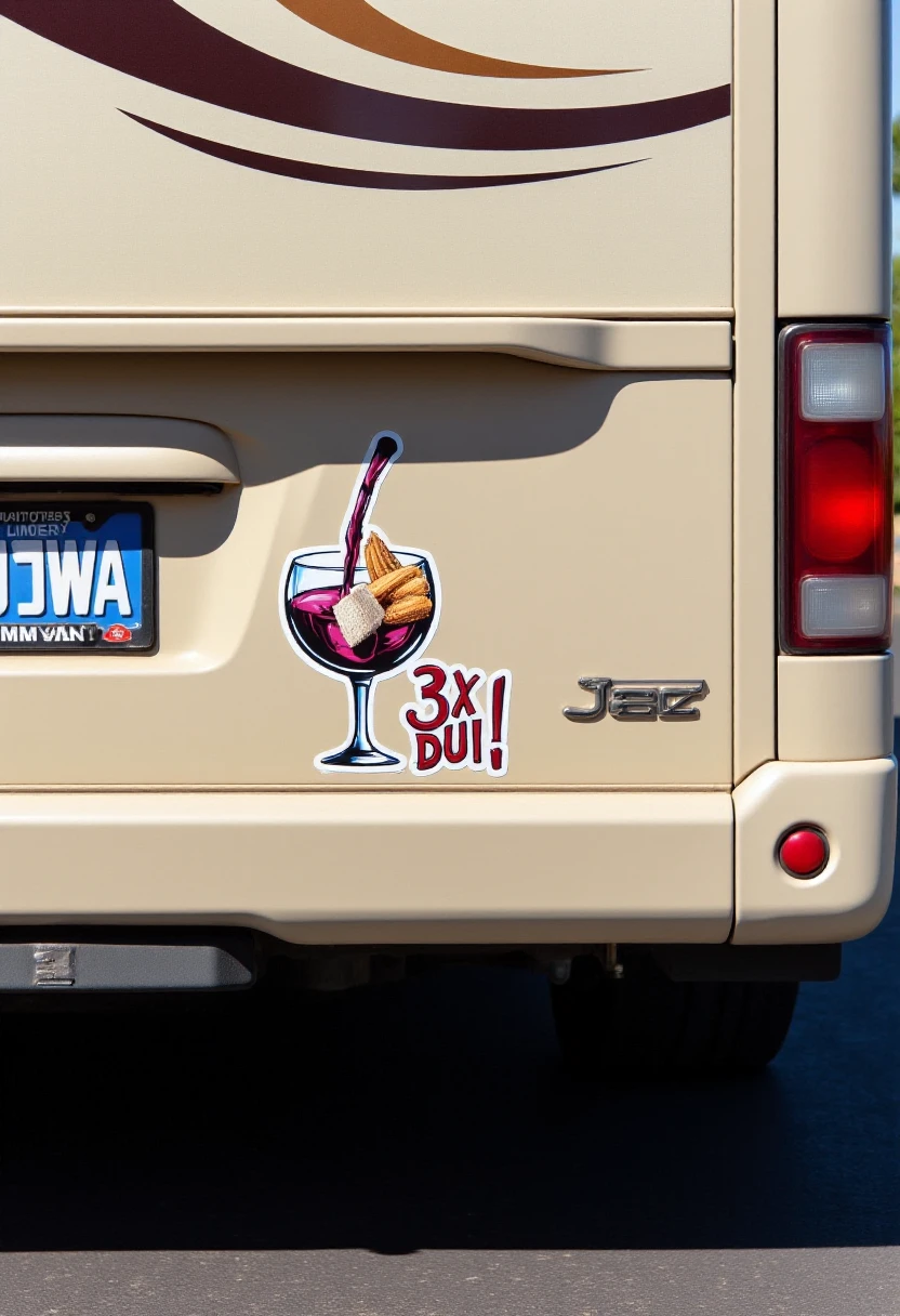 The rear bumper area is prominently adorned with a colorful decal featuring (SUBJECT)