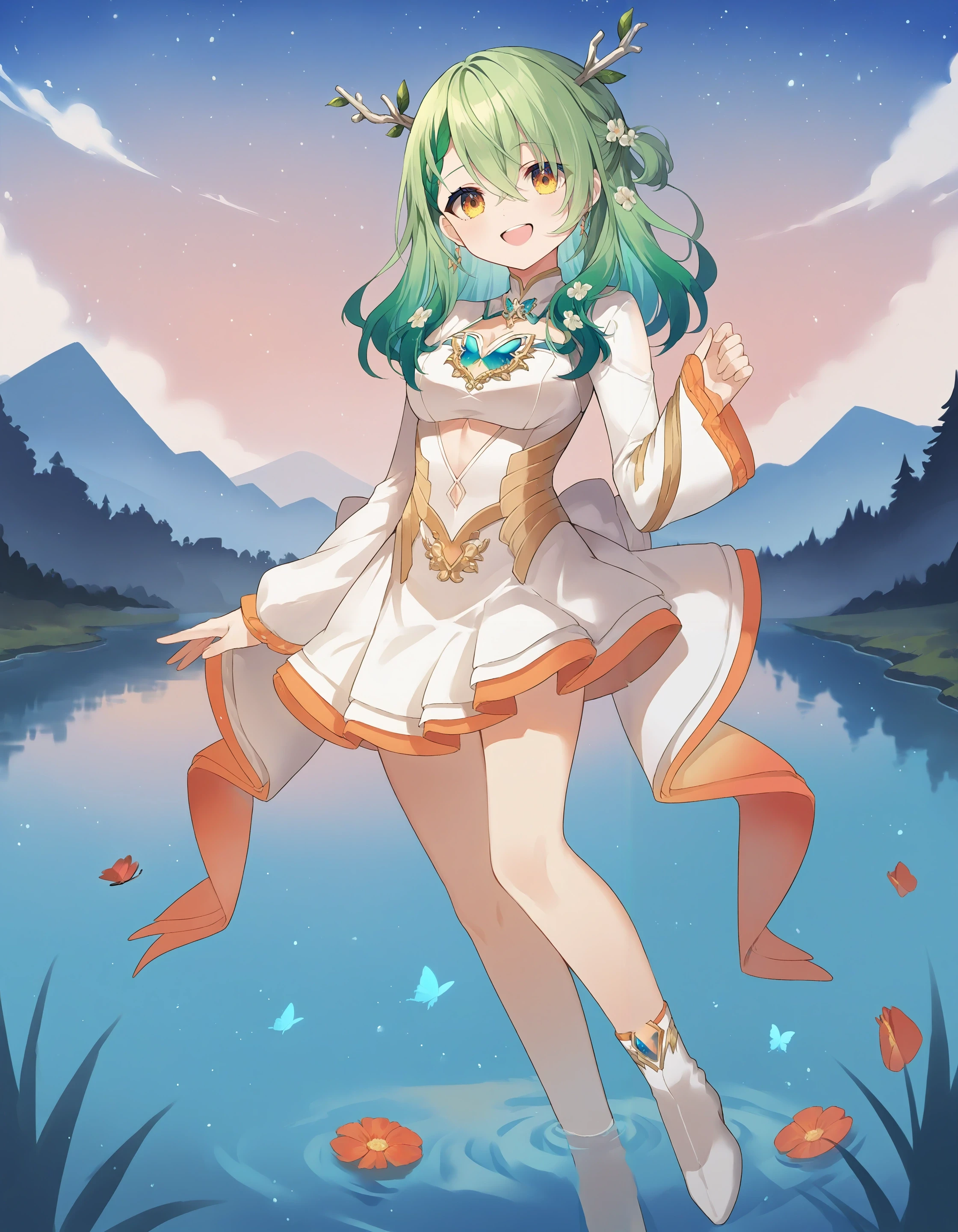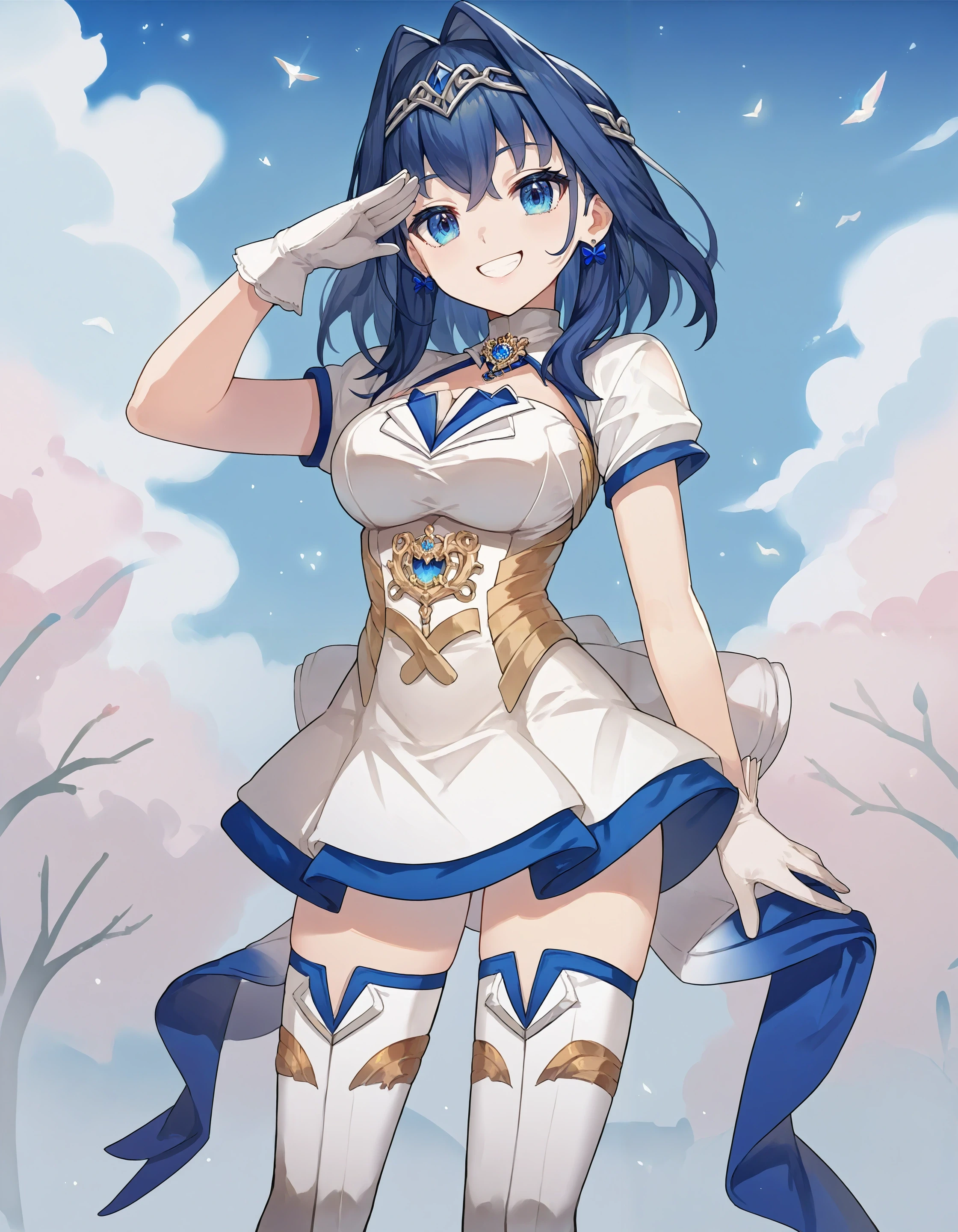 white dress/black dress, gold trim/silver trim (use gold trim in negatives), thigh boots/single thigh boot/asymmetrical legwear, aysmmetrical sleeves/long sleeves/elbow gloves/gloves, cutout above navel etc.I also found that using the character name wearing the outfit strengthens their outfit:
