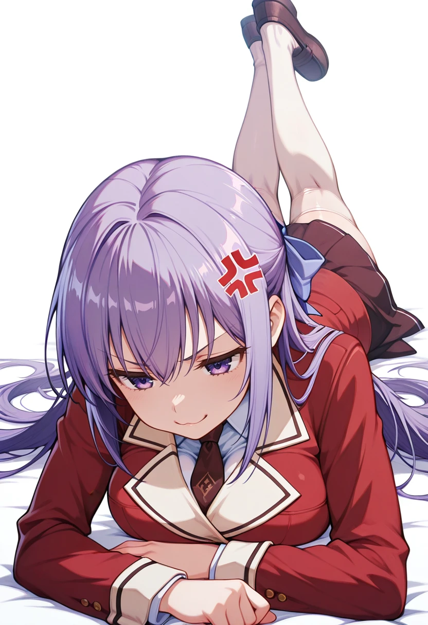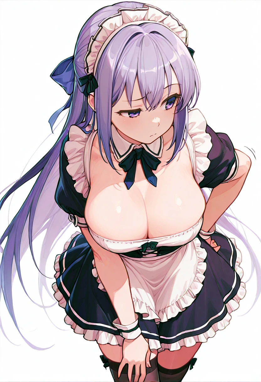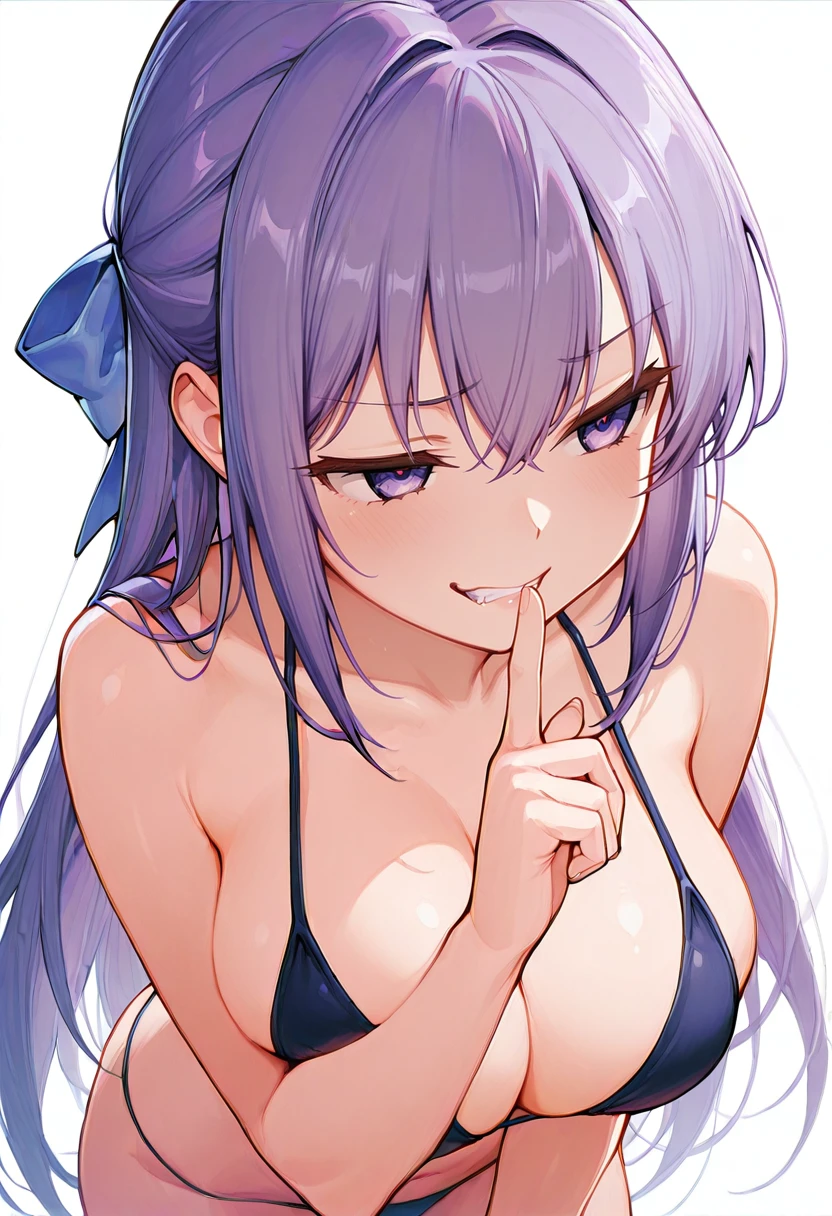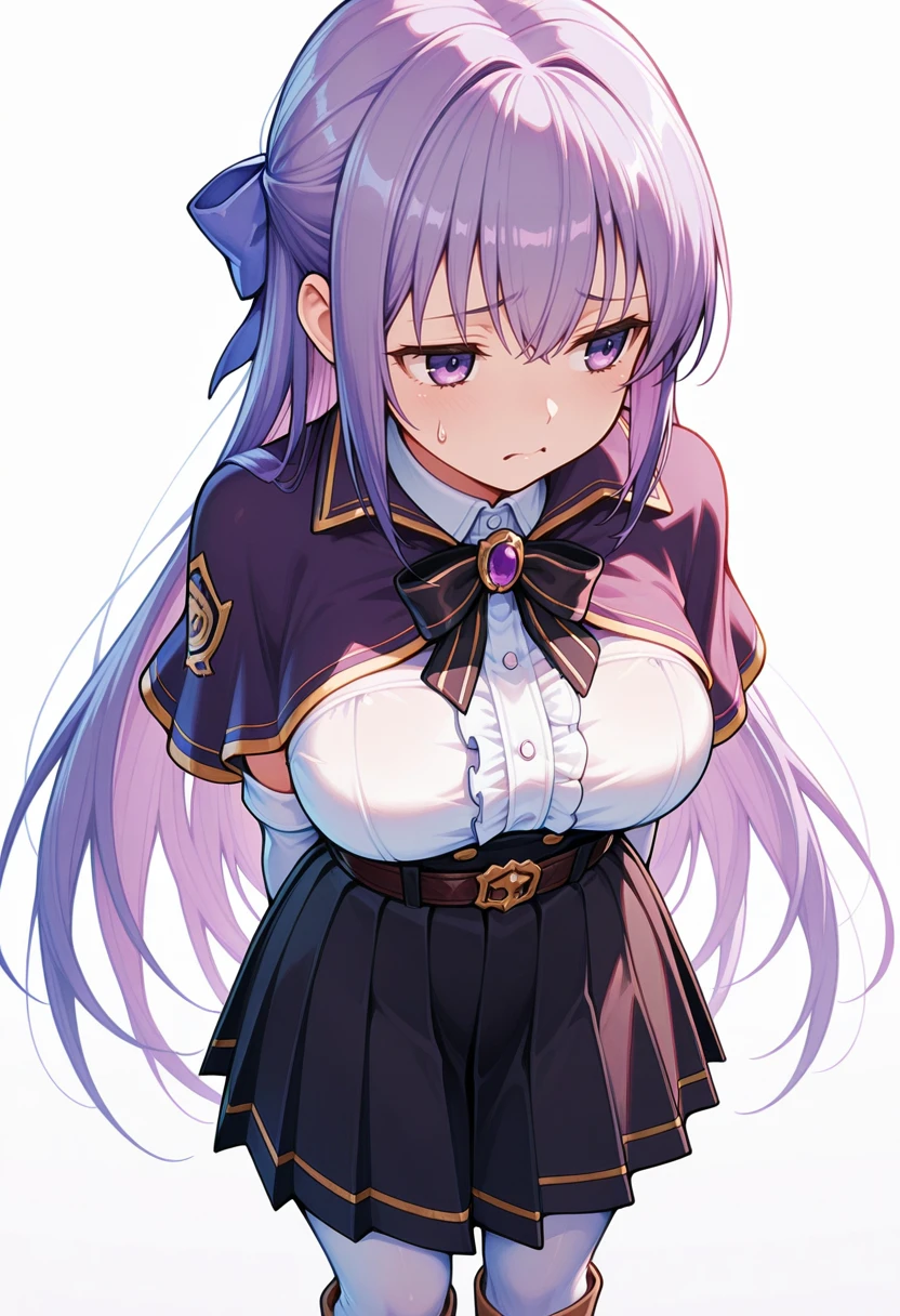 ayano_cnr, 1girl,purple hair, long hair, hair bow, purple eyes, very long hair, large breasts, hair ribbon,