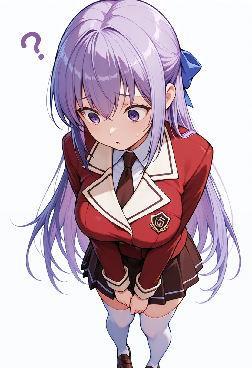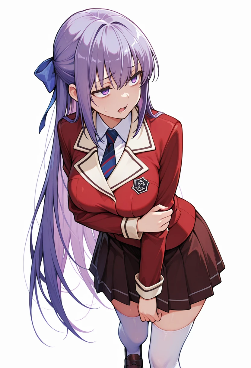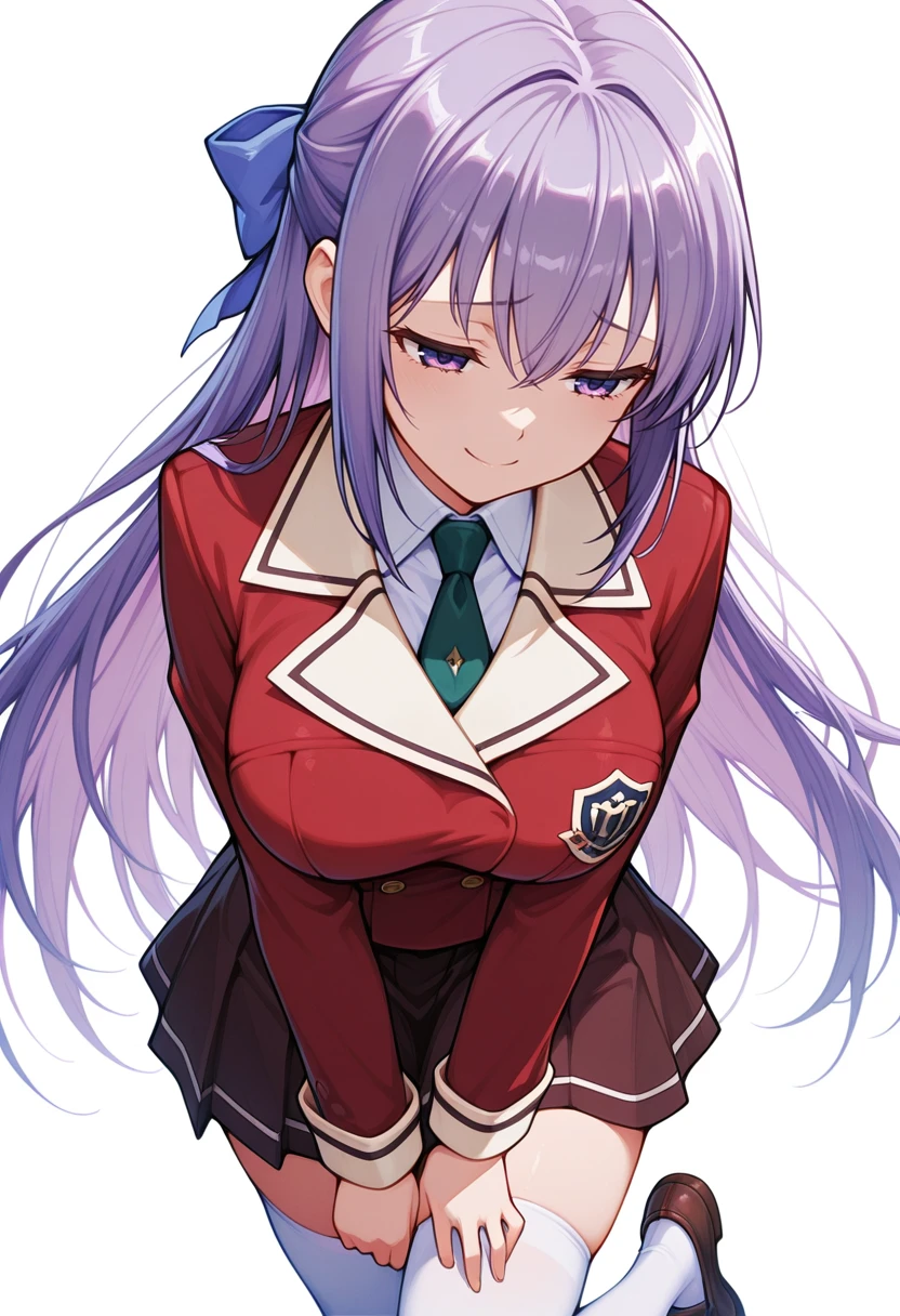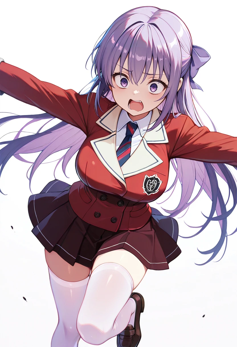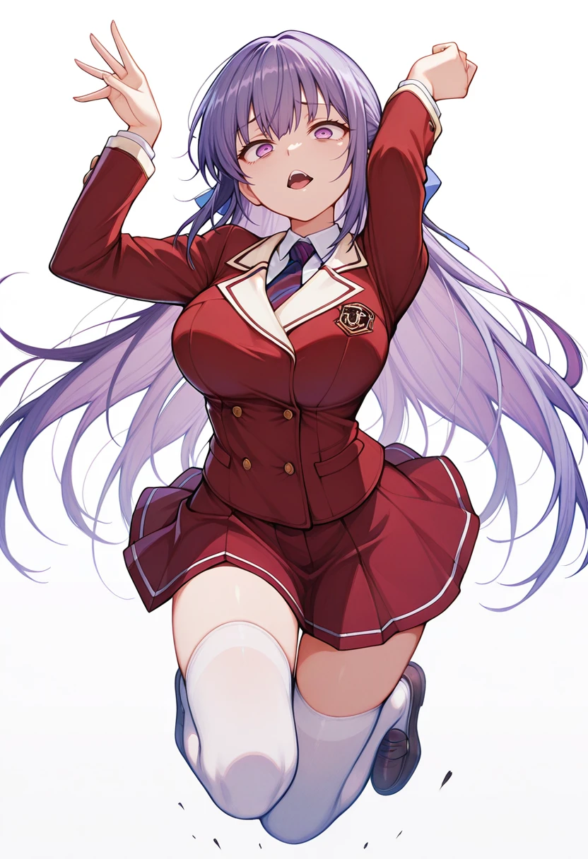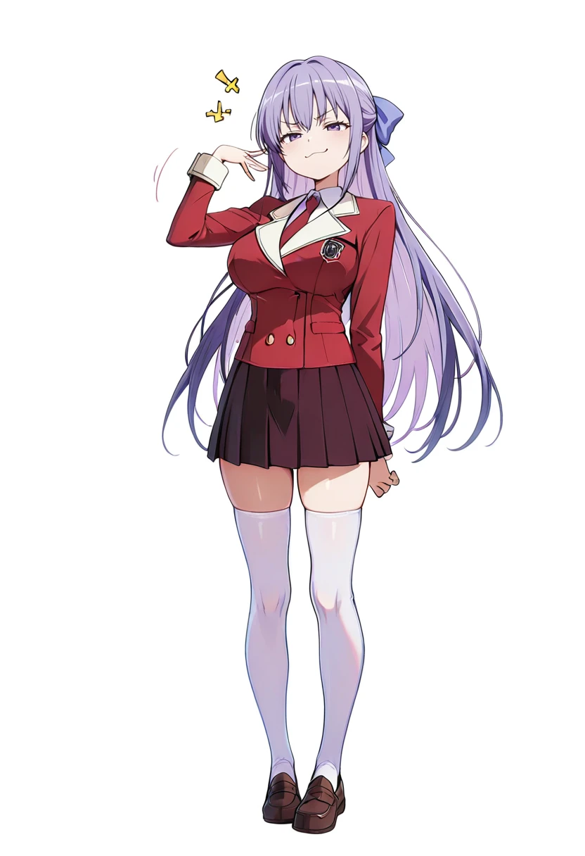 necktie,red blazer, long sleeves, zettai ryouiki, loafers, white thighhighs,