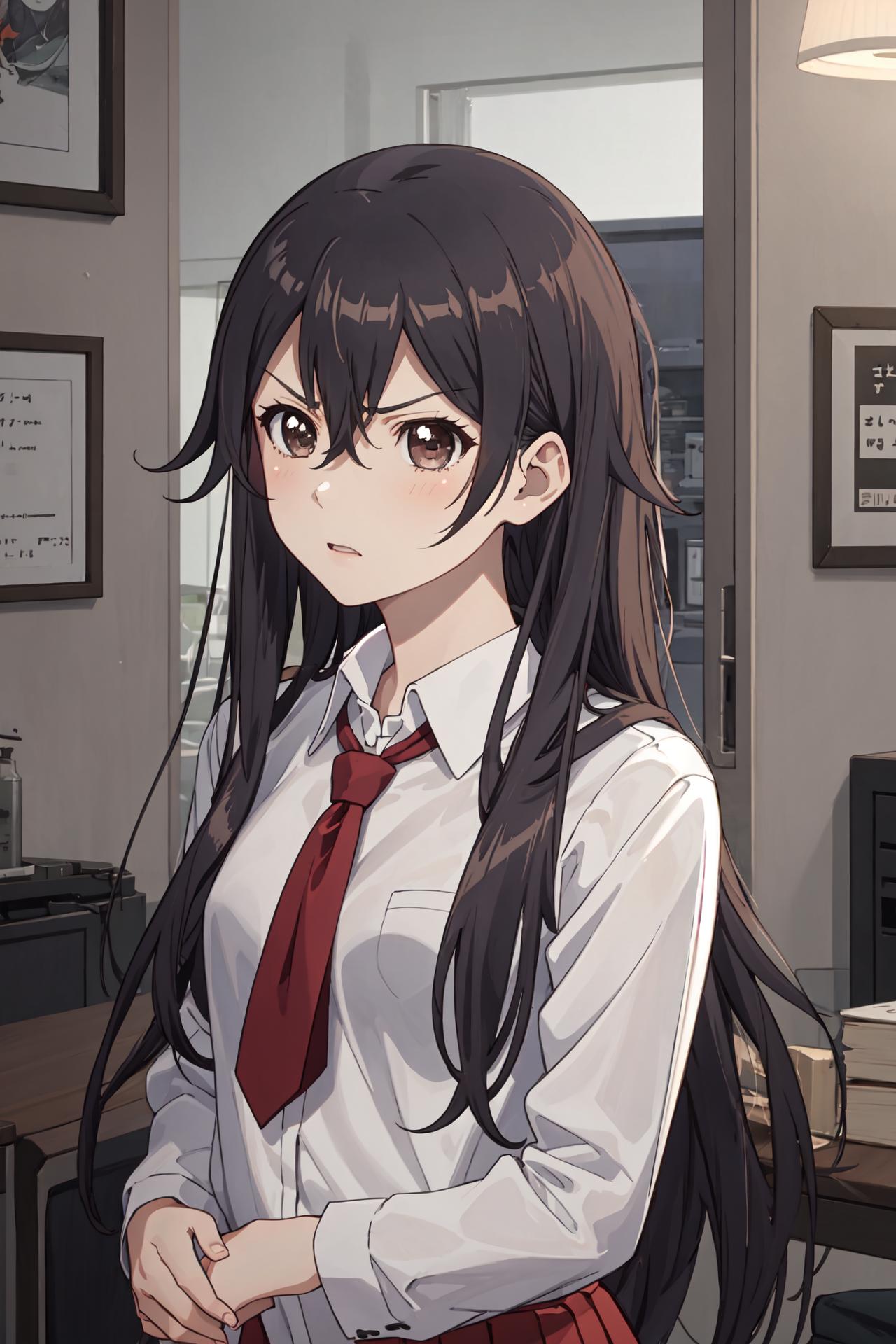 Base Generation Parameters: ishikawa-goe, long hair, black hair, light-brown eyes, loose hair,