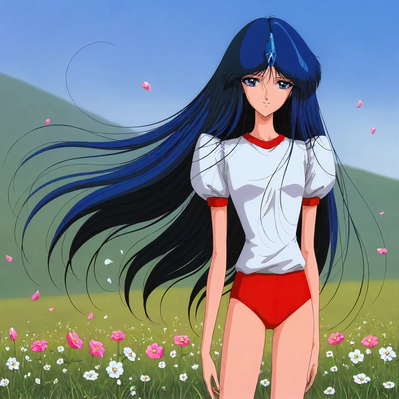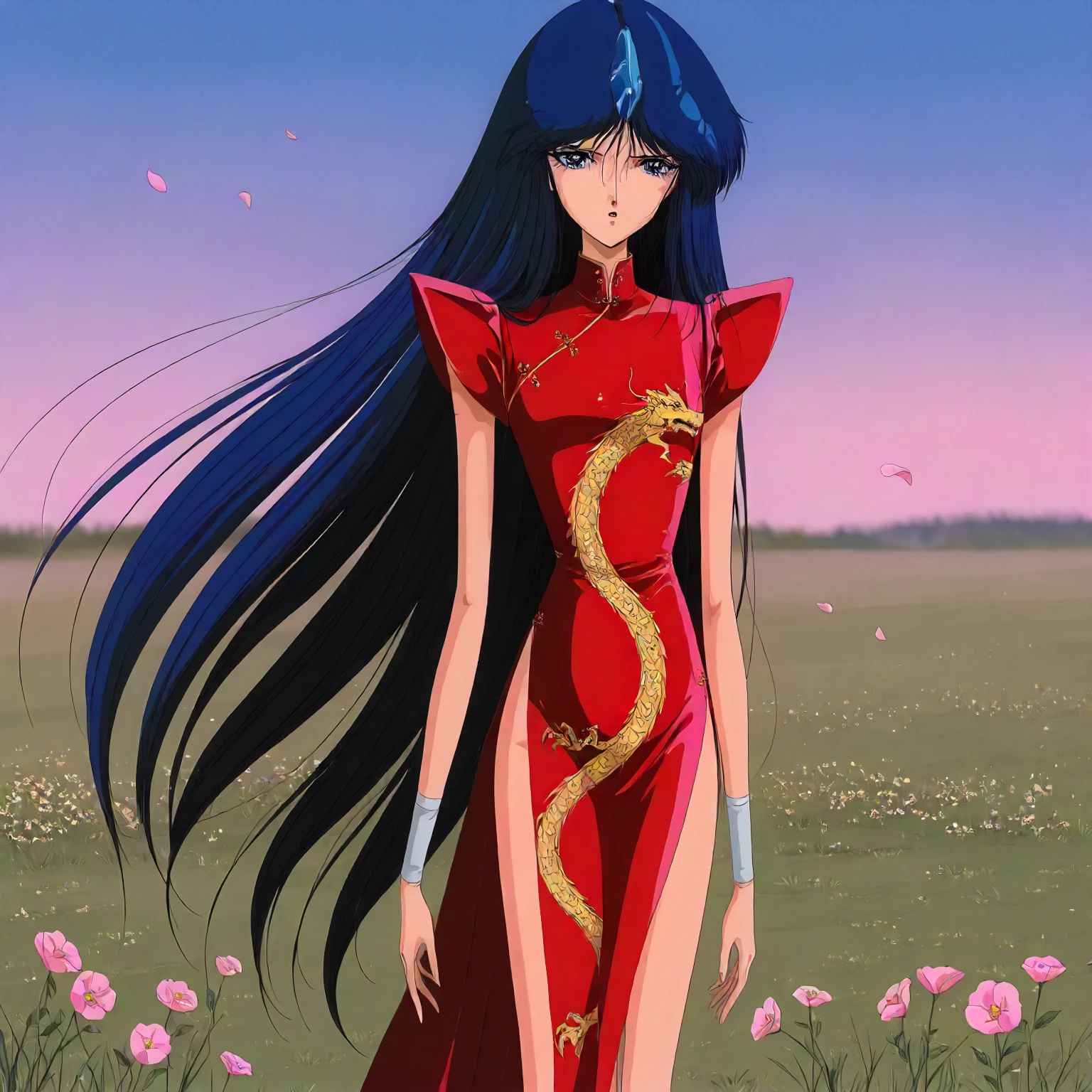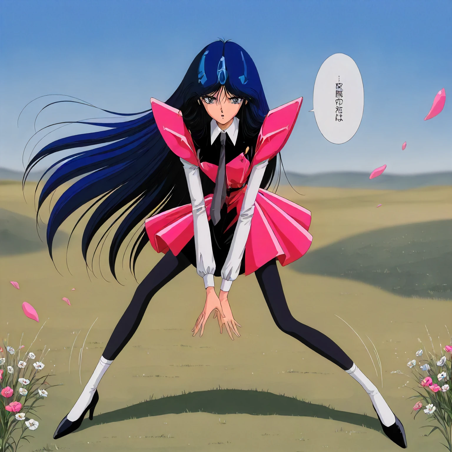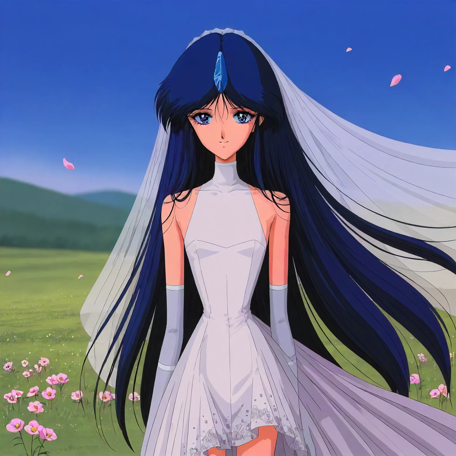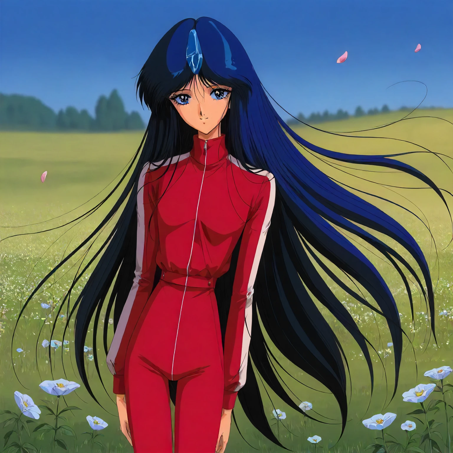 anime coloring,retro artstyle, fatima_clotho\(five_star_story\),1girl,black-blue hair,long hair,head jewel,blue eyes,skinny,skinny,