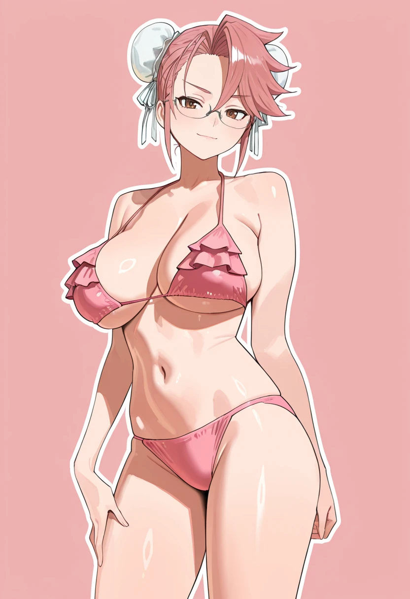 swimsuit, frilled bikini, hair bun, pink bikini, bun cover, double bun, short hair,