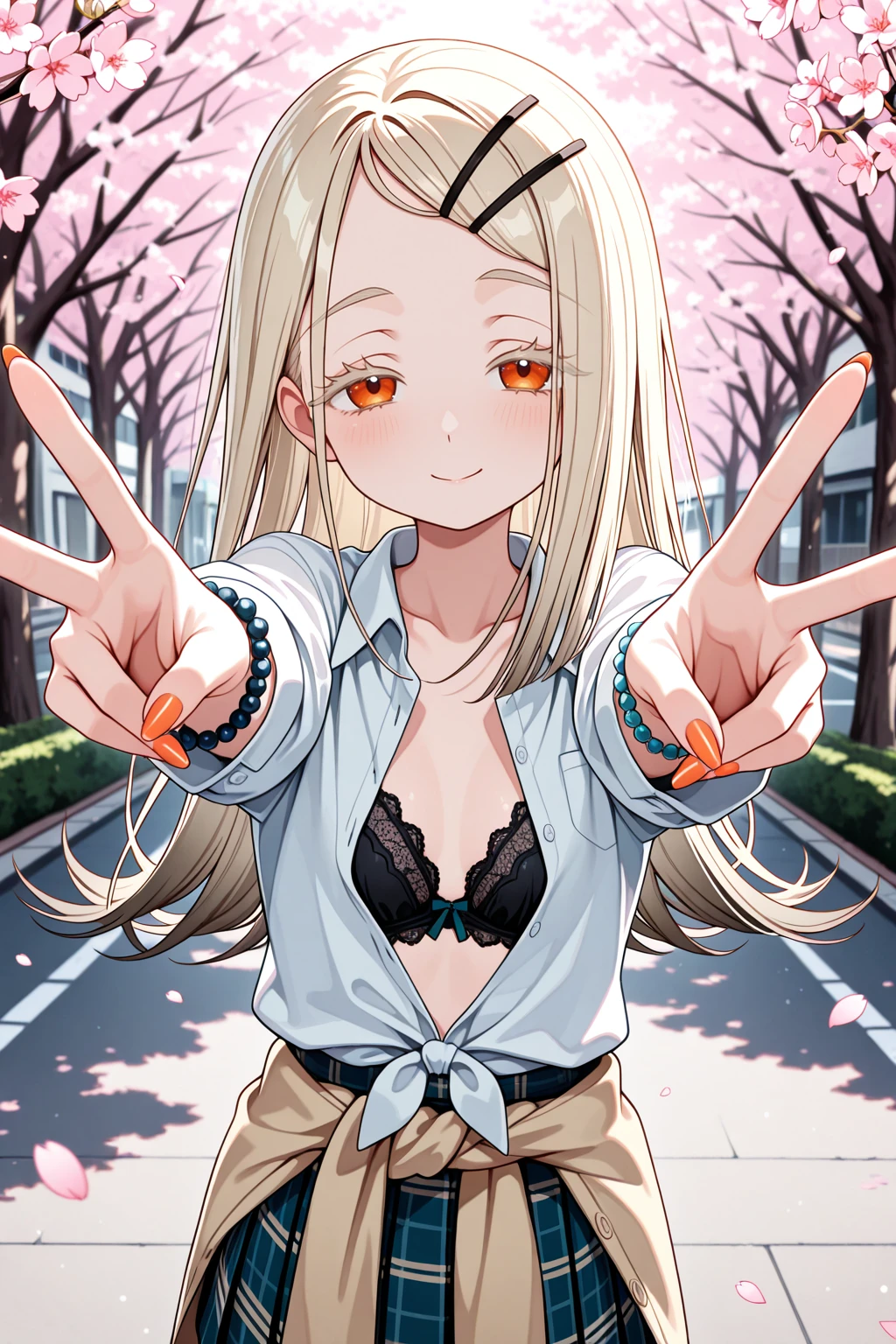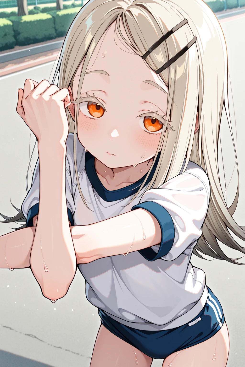shinosawa hiro, blonde hair, colored eyelashes, orange eyes,