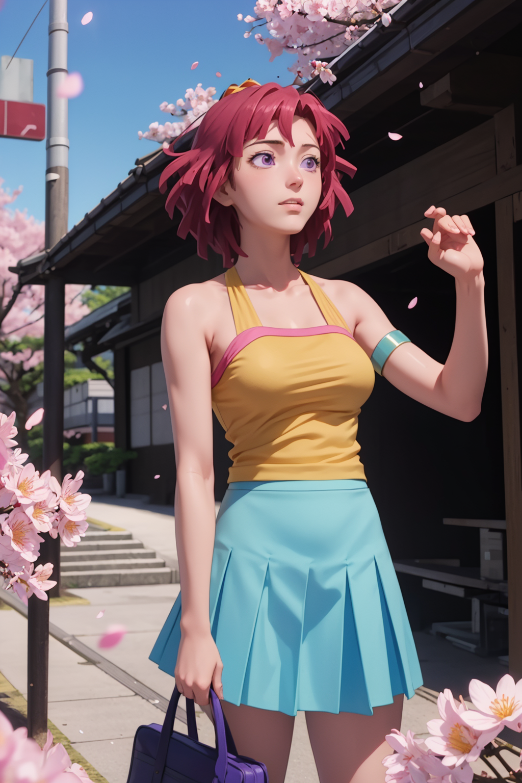 Casual outfit prompts: bare shoulders, yellow shirt, skirt