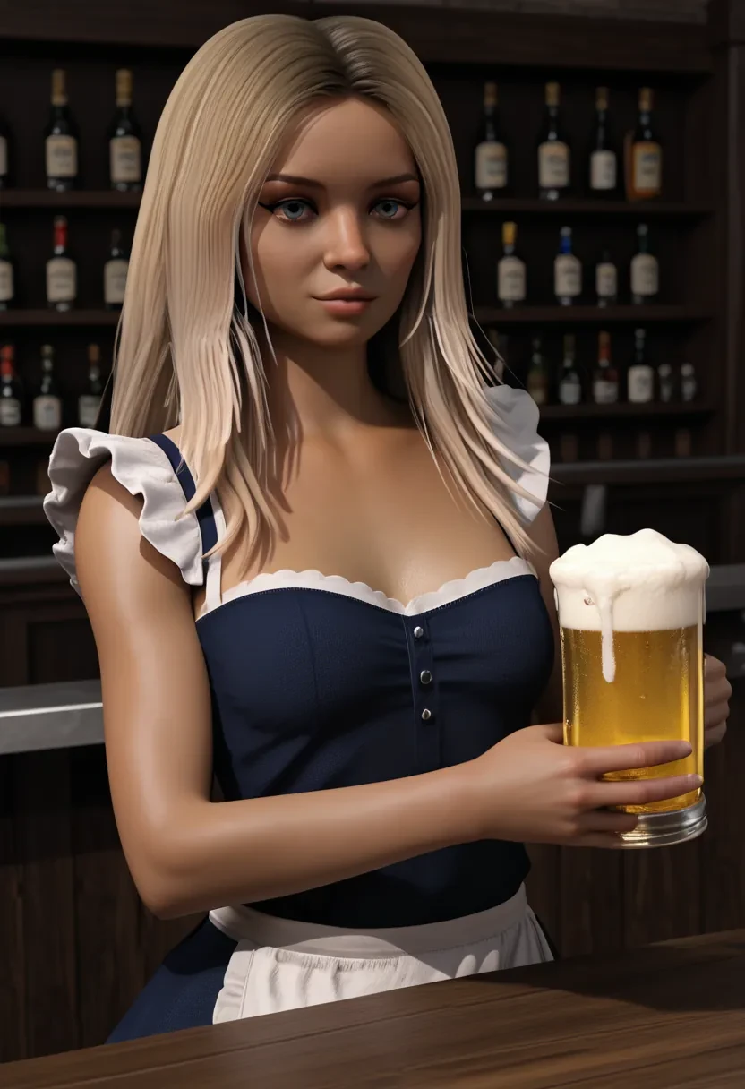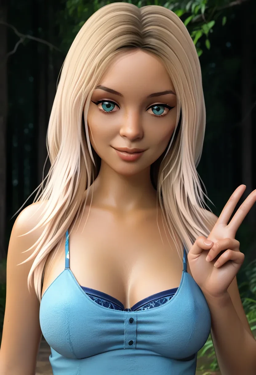 Emma, long hair, blonde hair, medium breasts, blue eyes, dark-skinned female, multicolored hair, mole, lips, nose,