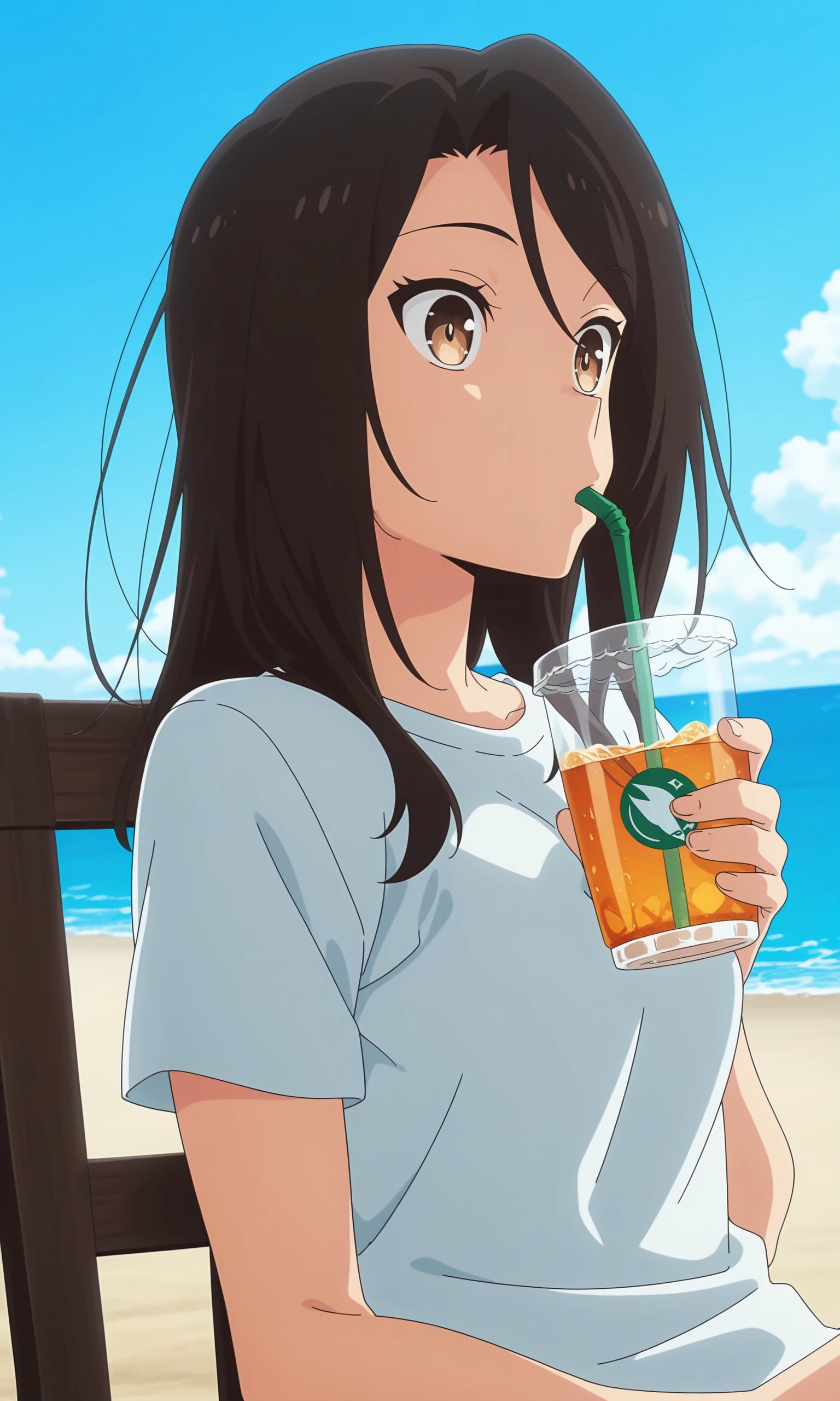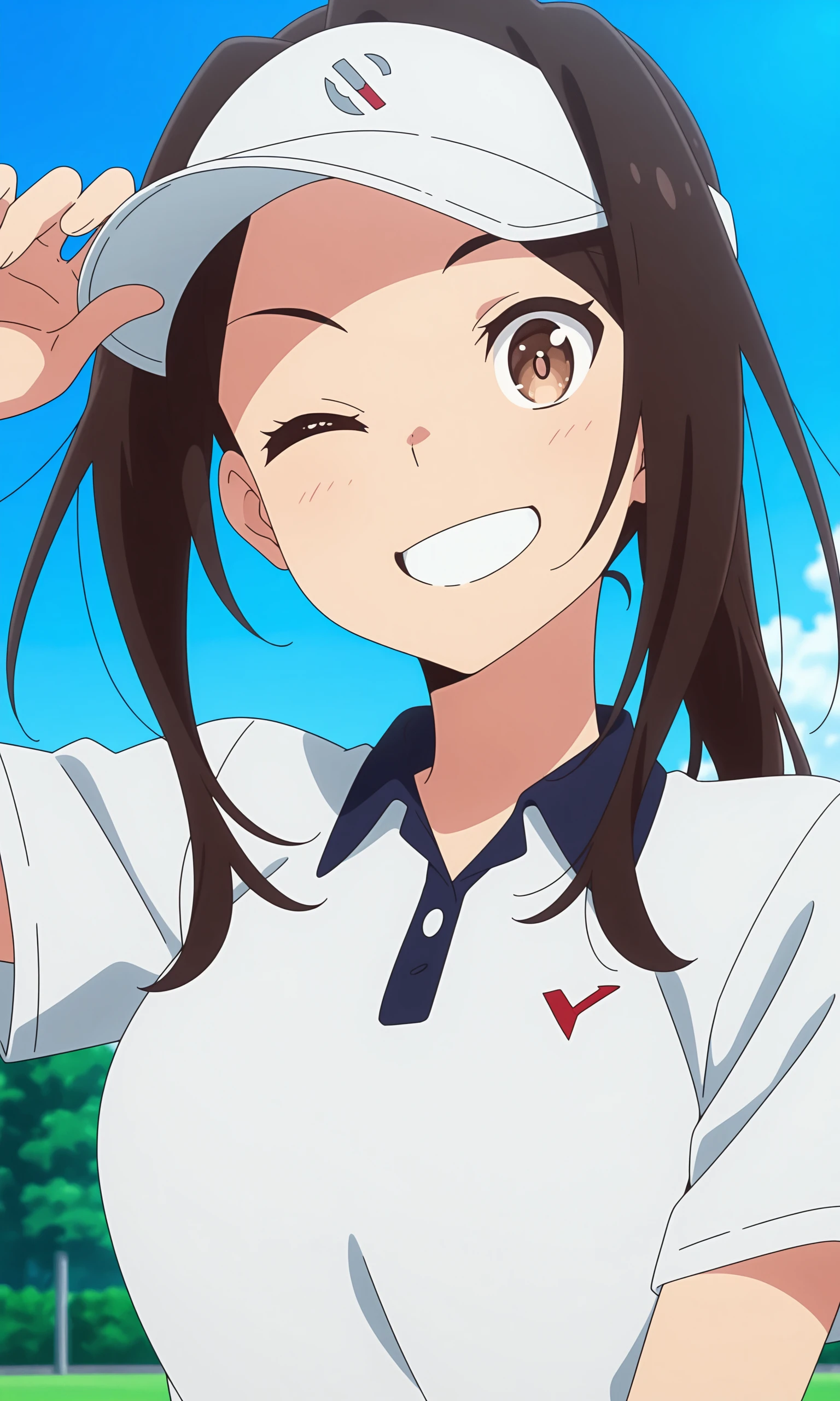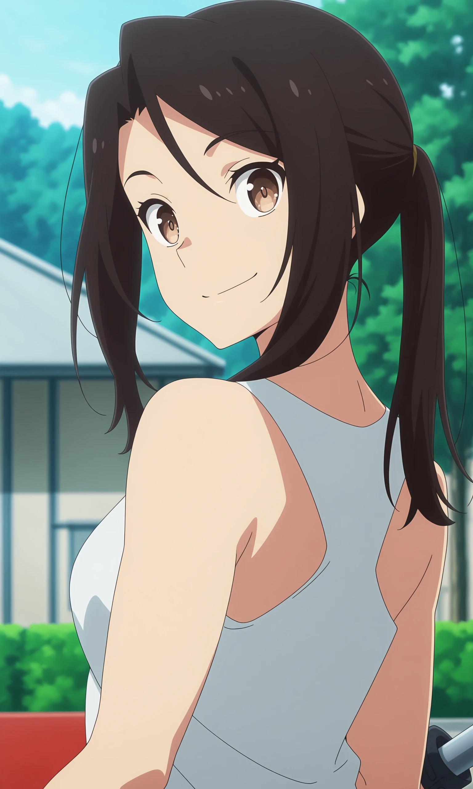 Haruka, brown eyes, brown hair, long hair, ponytail, hair between eyes,