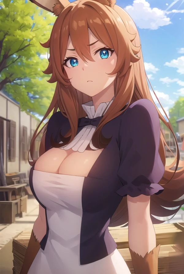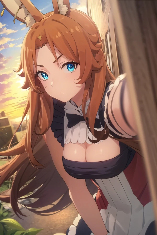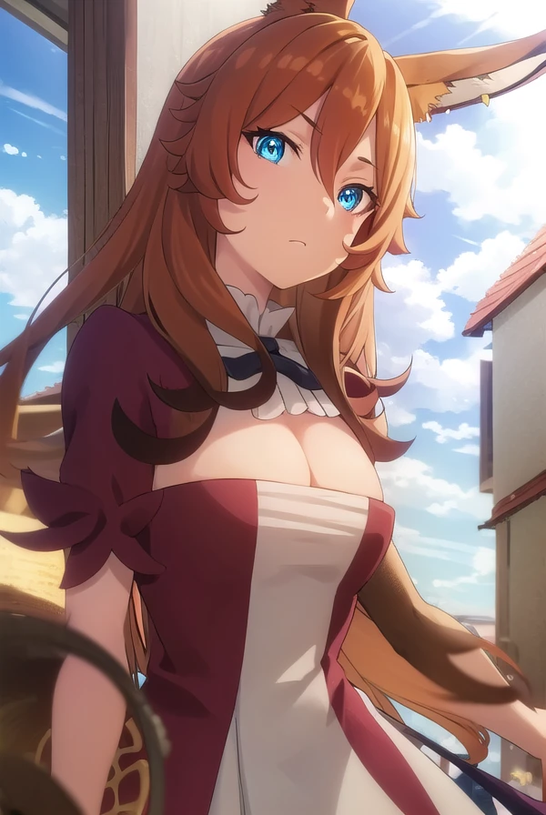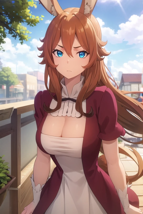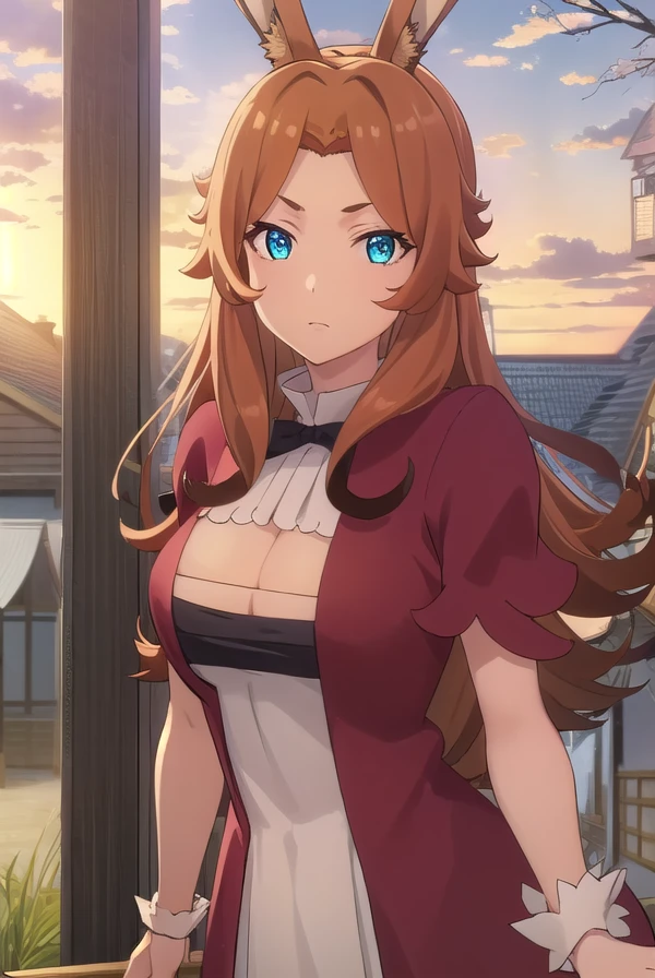 delilah, long hair, brown hair, animal ears, blue eyes, rabbit ears,