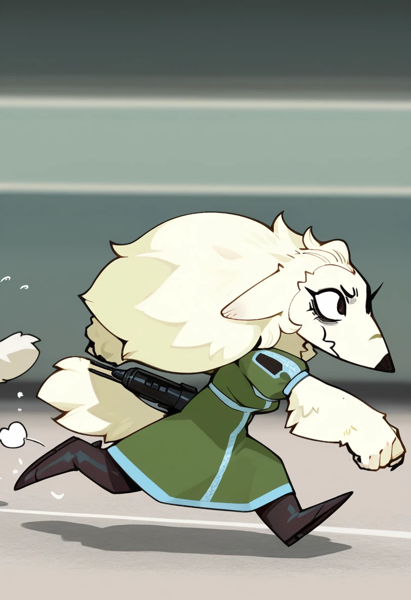 Trigger: IL2k88comet, 1girl, furry, furry female, long hair, body fur, tail, green dress, short sleeves,