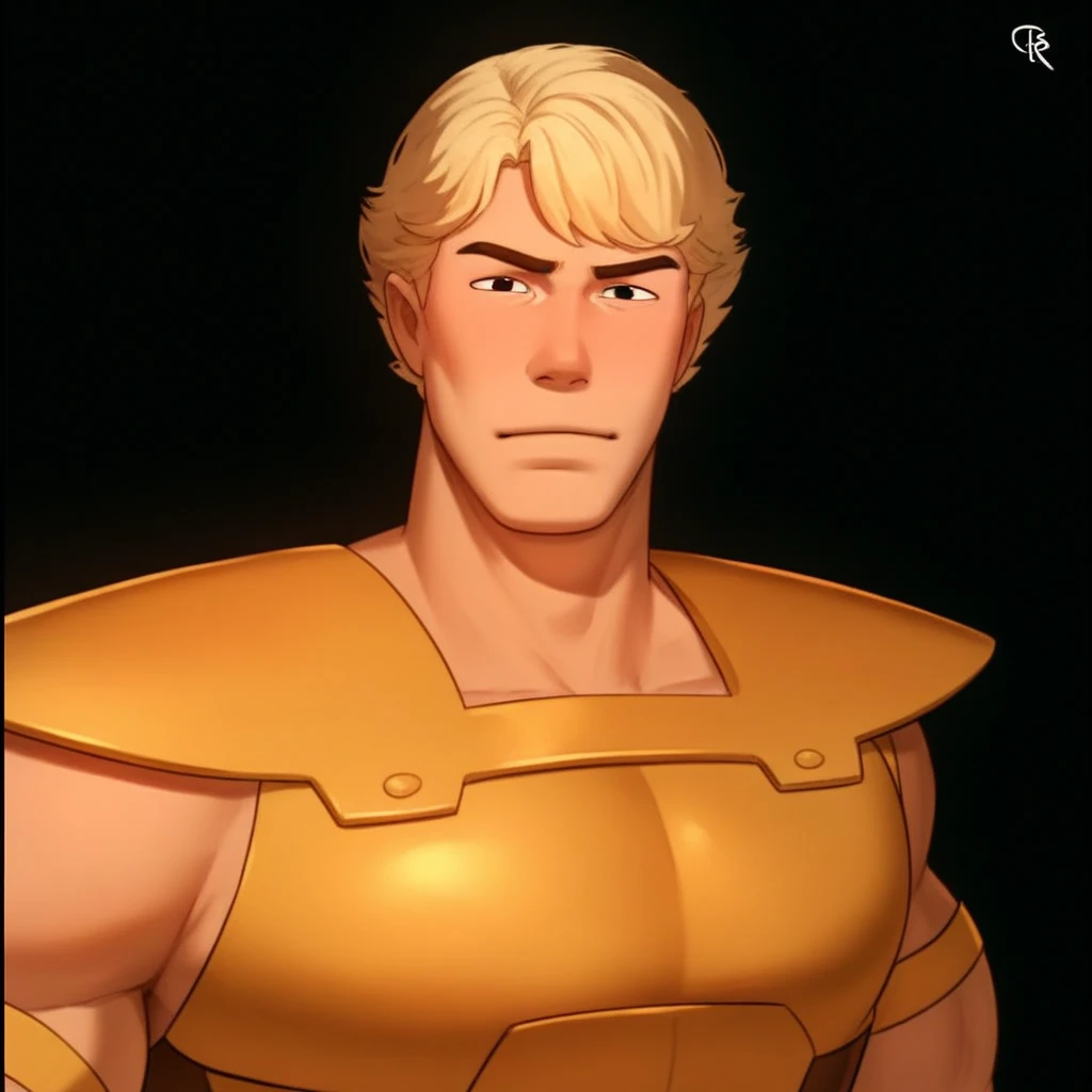 Ga1tar, 1boy, solo, male focus muscular, muscular male, blonde hair, black eyes,