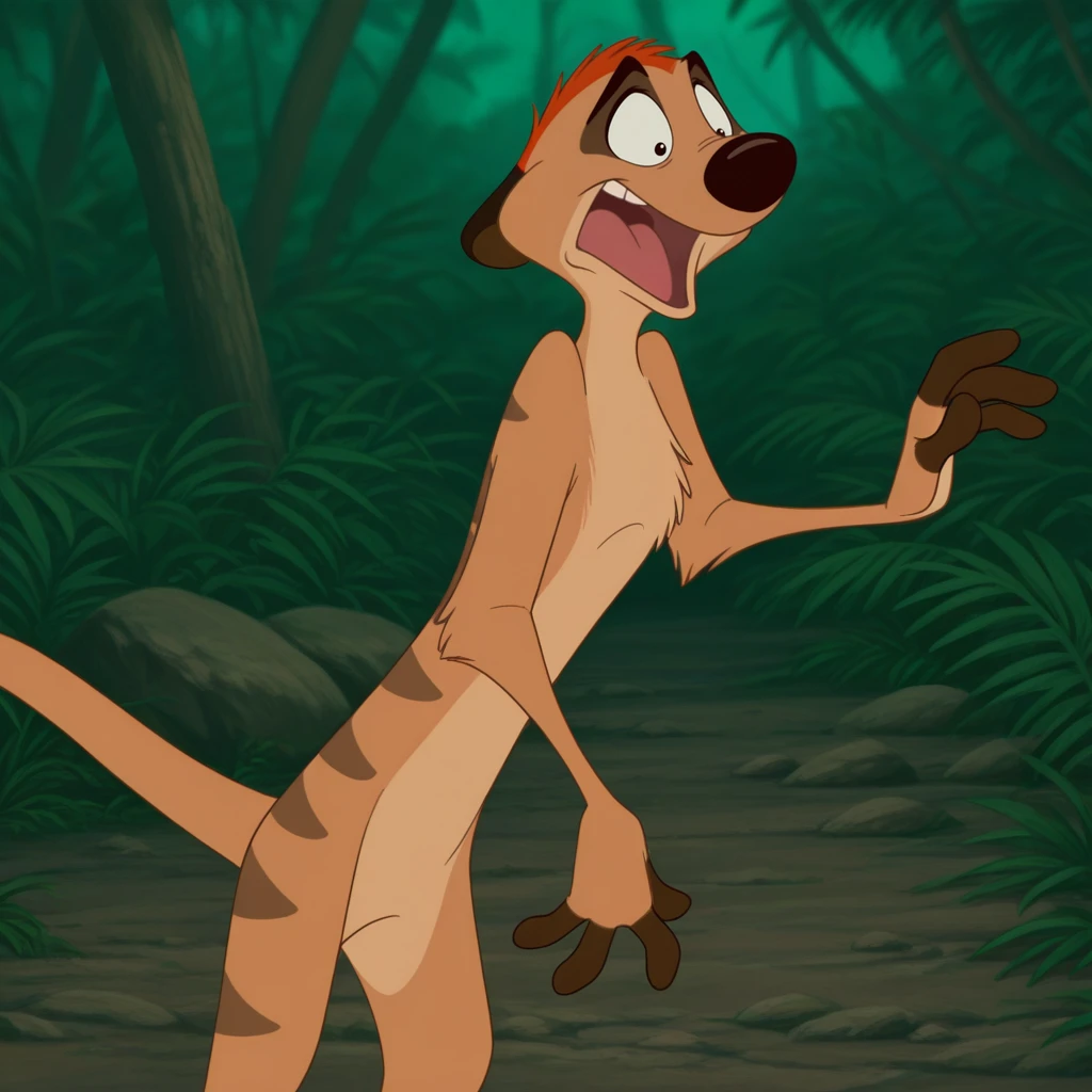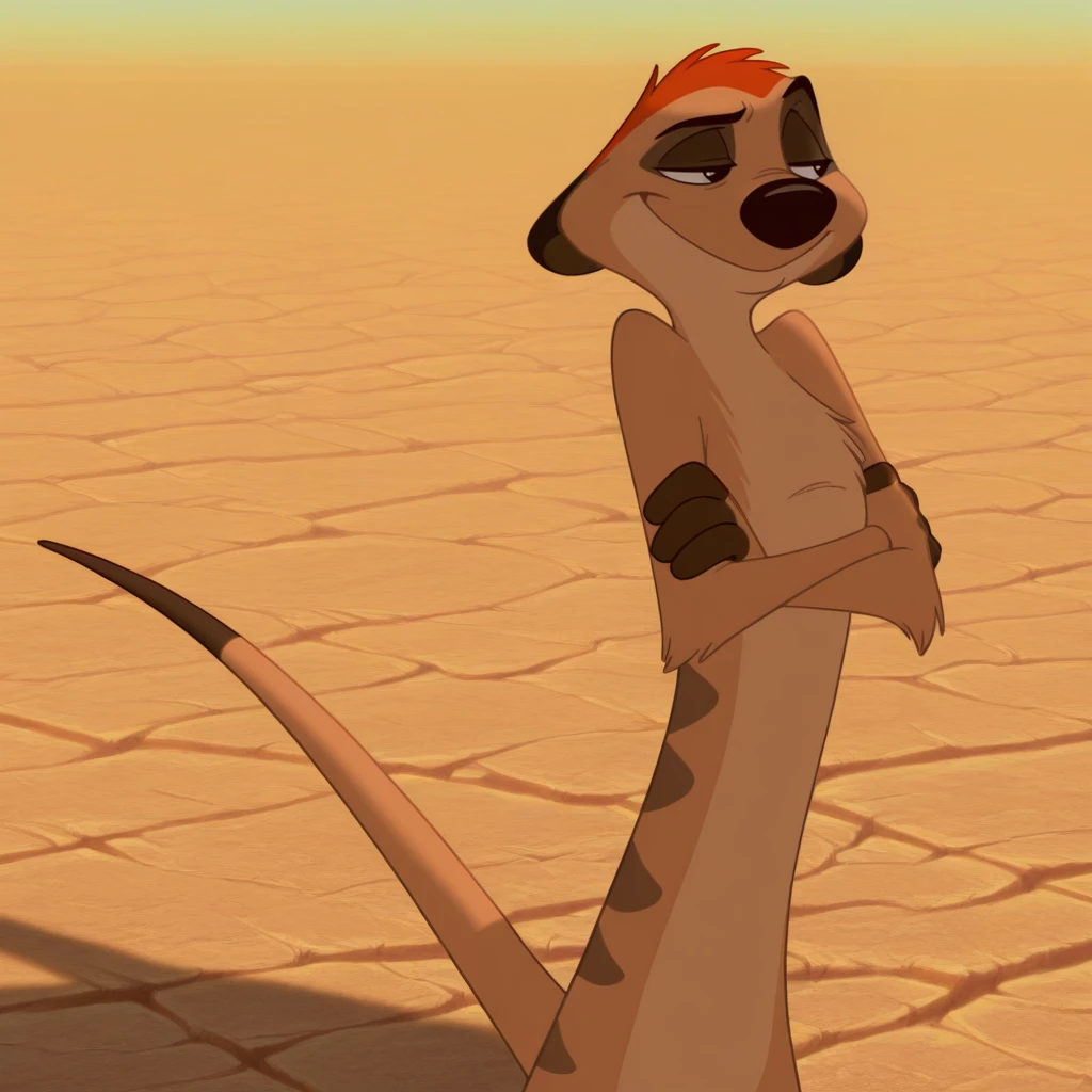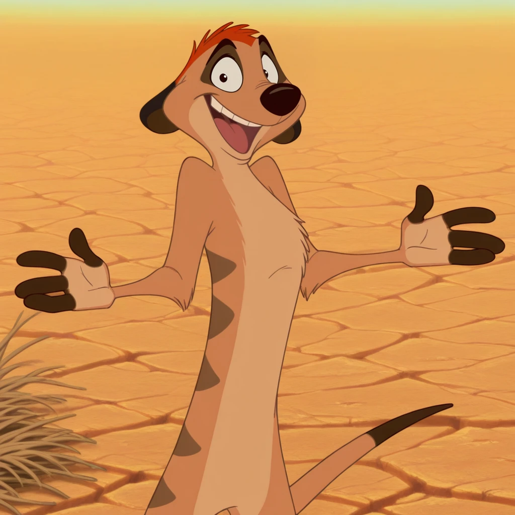 1boy, male, furry, meerkat, solo, tan fur, two-tone fur, orange hair, short hair, black eyes, brown nose, short ears, dipstick tail, stripes on back