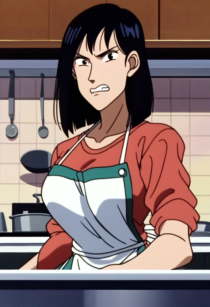 igawa keiko, black hair, black eyes, medium hair, breasts,