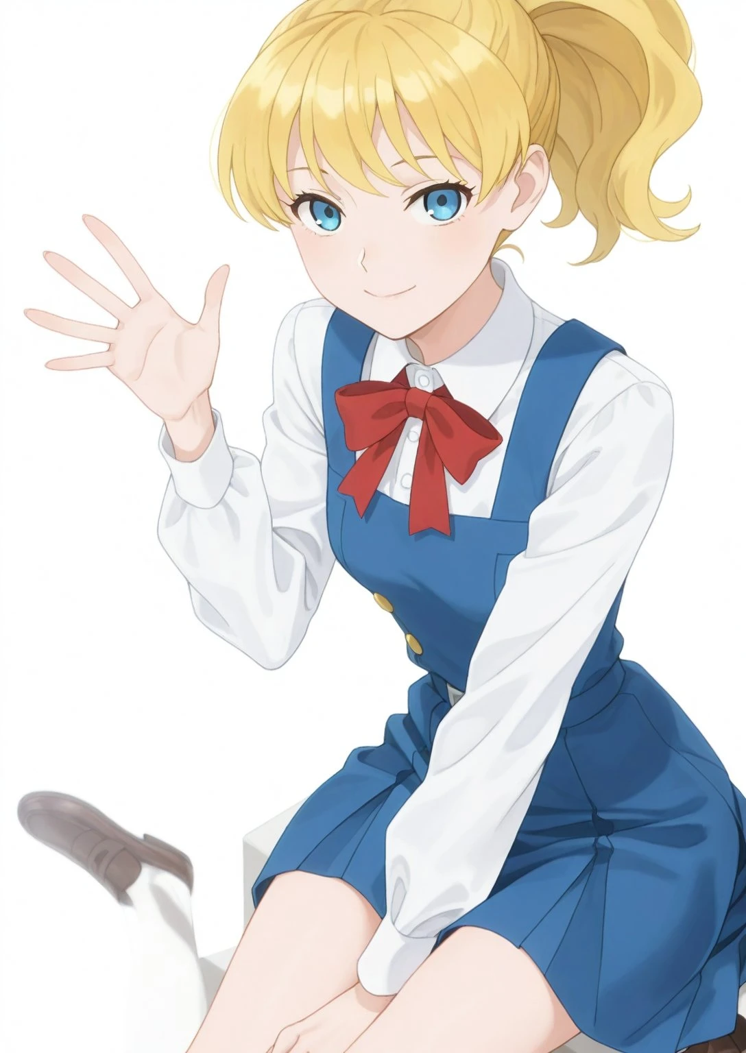Appearance: sdxl-lotta-otus, blonde hair, ponytail, blue eyes, long hair, small breasts