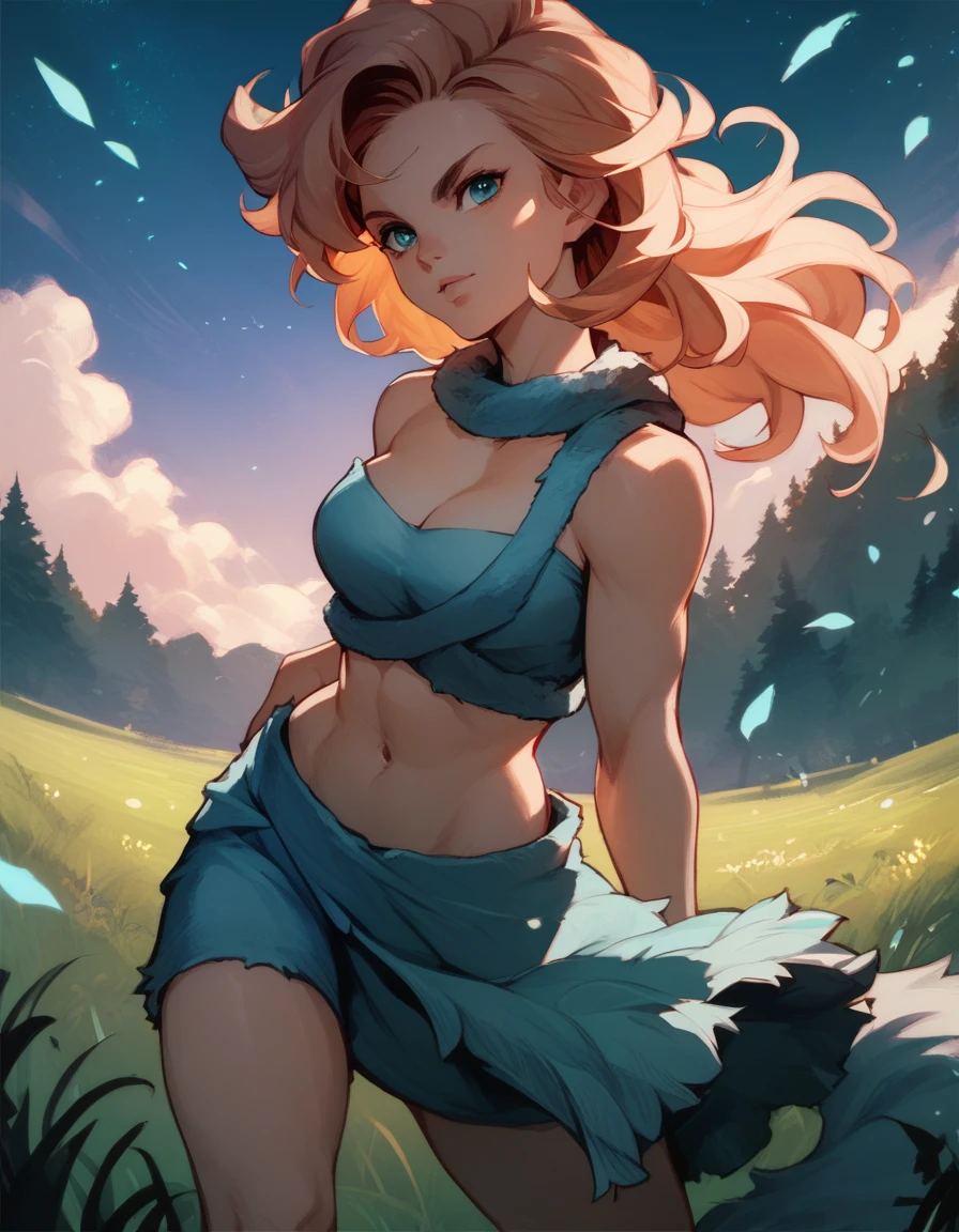 ayla: ayla, bare shoulders, midriff, cleavage, fur, fur skirt