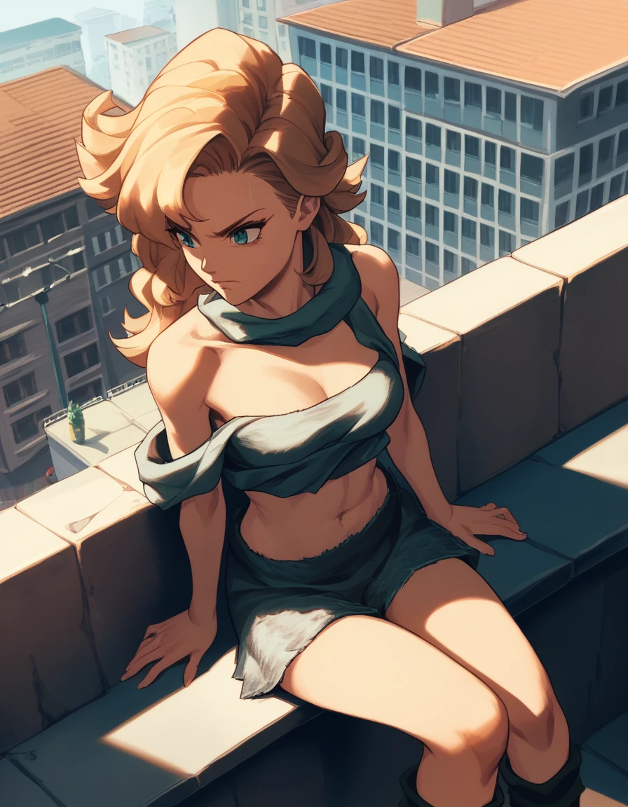 ayla, bare shoulders, midriff, cleavage, fur, fur skirt