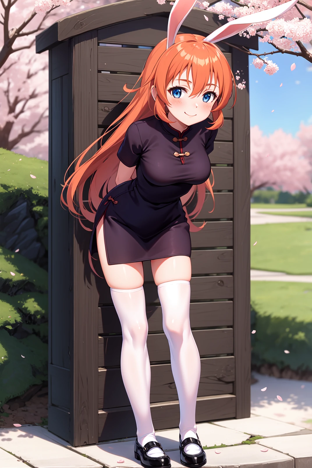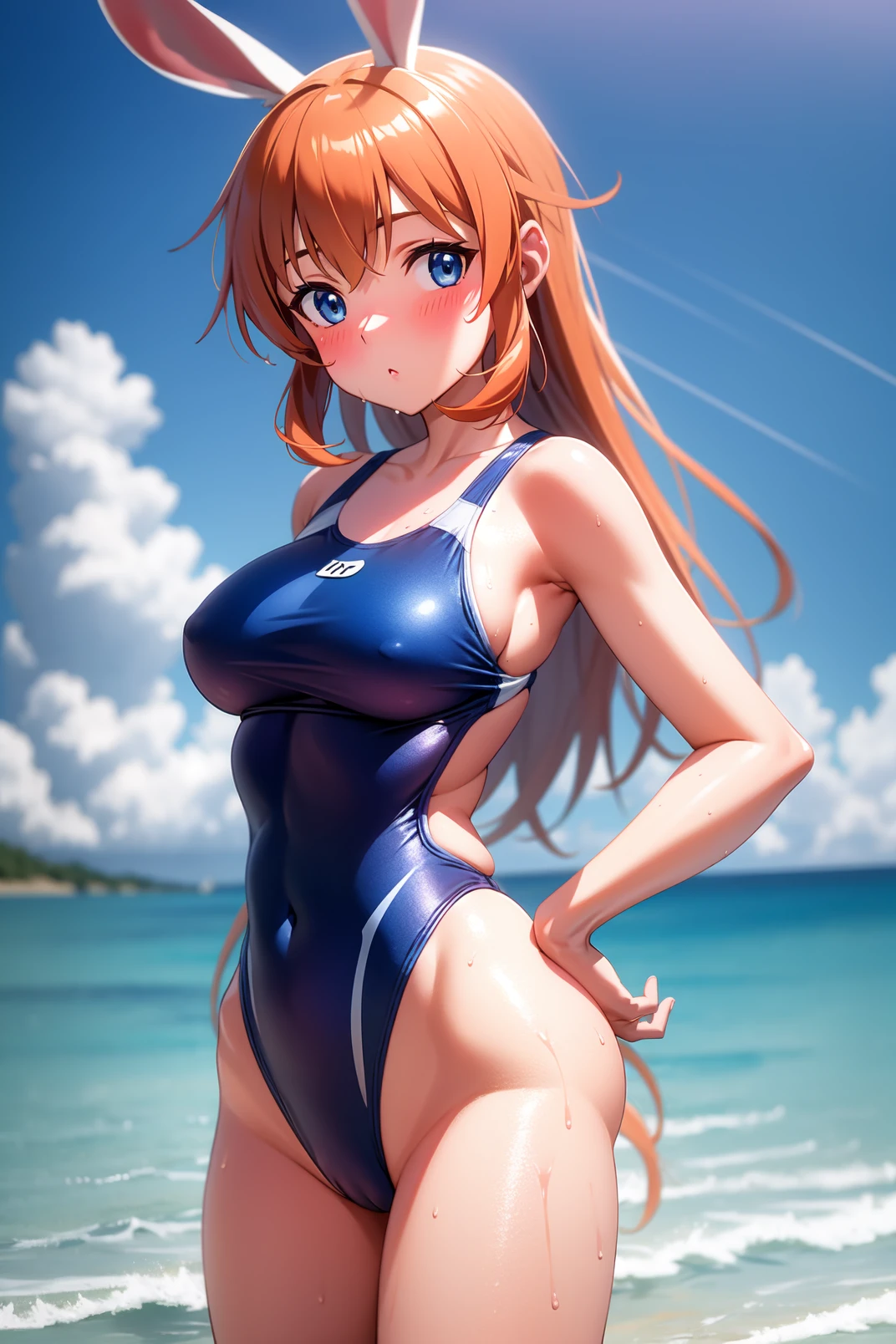 charlotte, blue eyes, orange hair, long hair, rabbit ears, rabbit tail