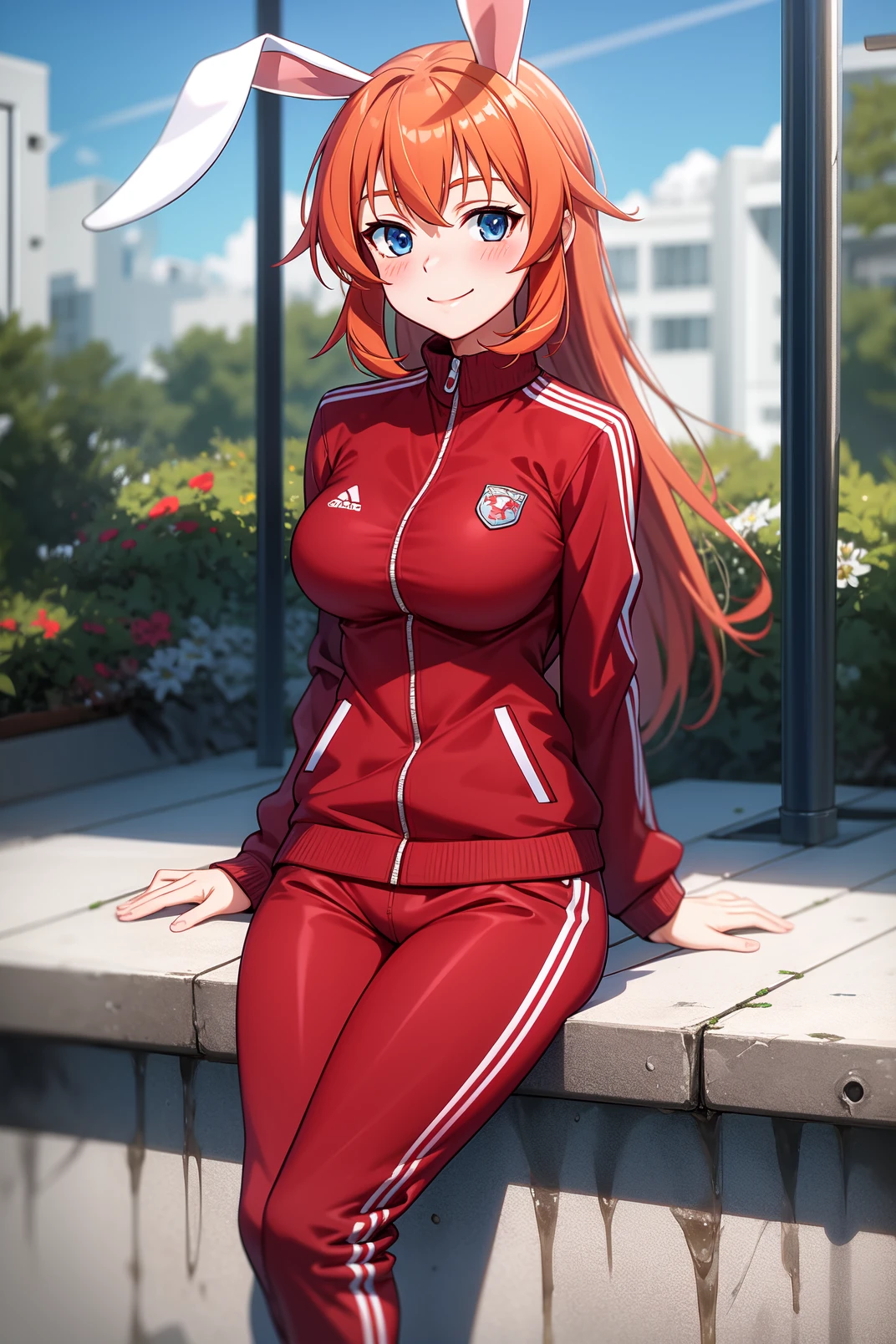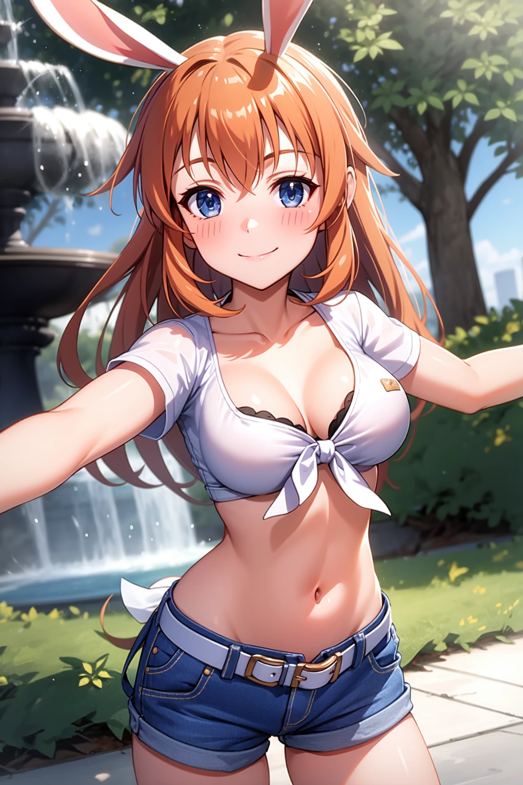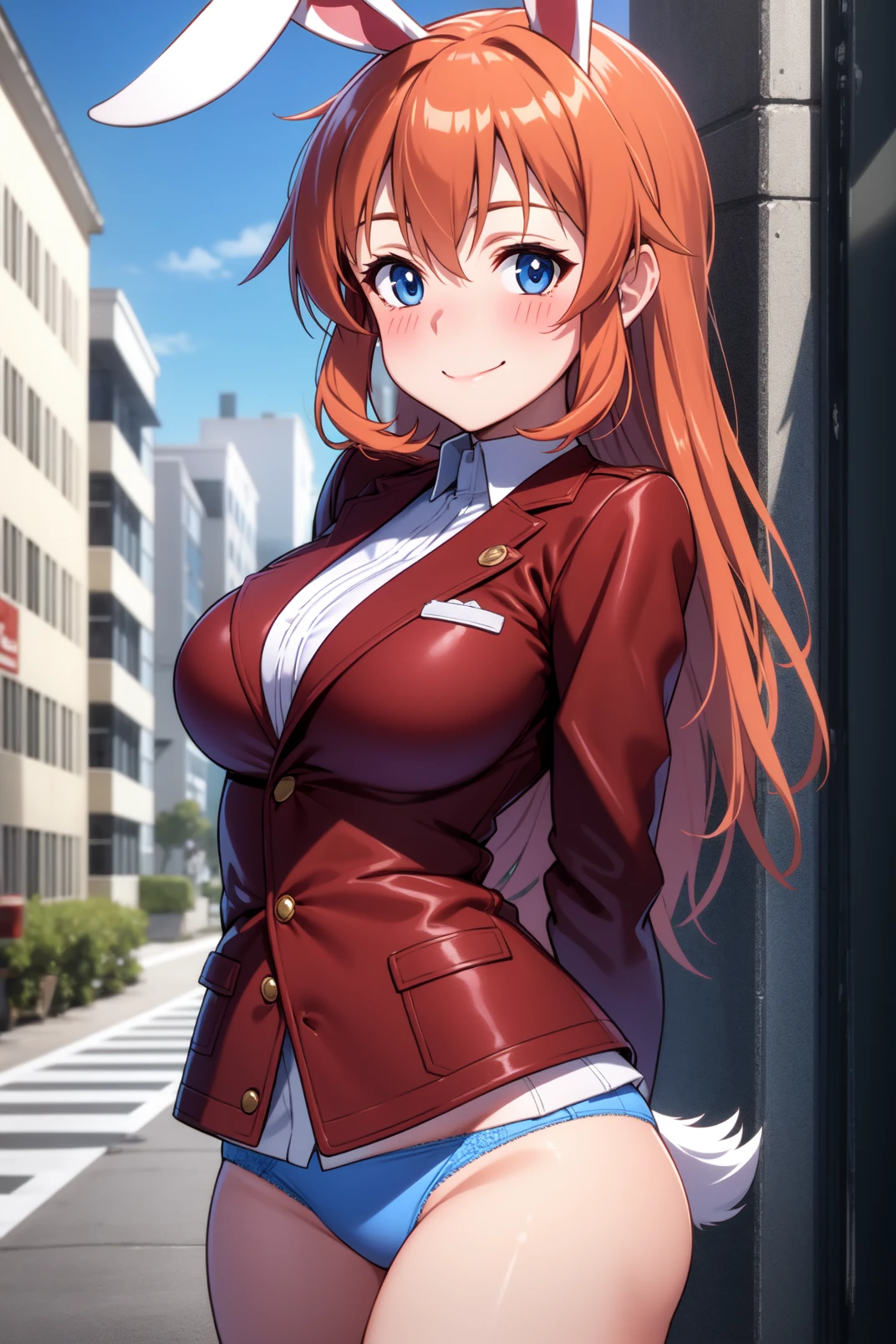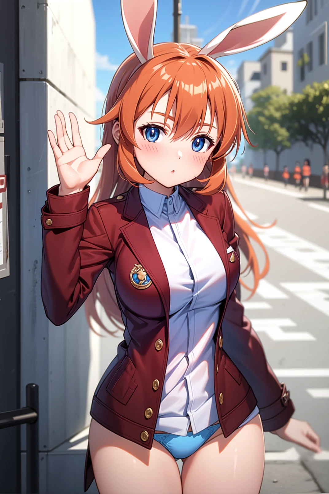 appearance: charlotte, blue eyes, orange hair, long hair, rabbit ears, rabbit tail