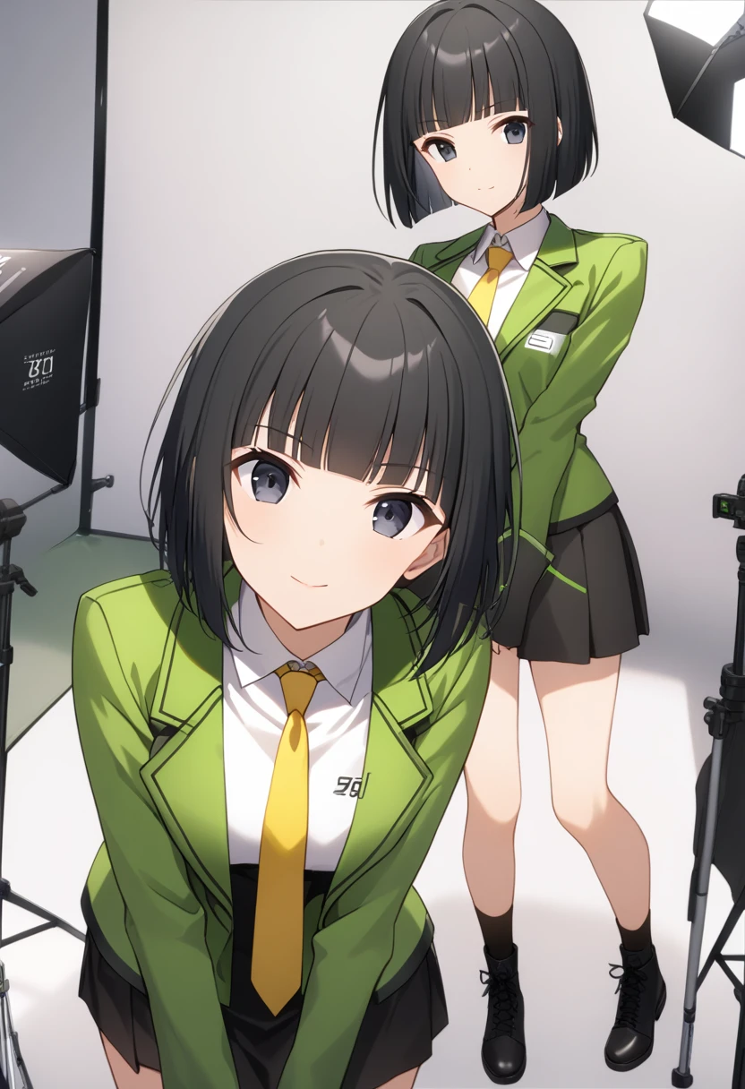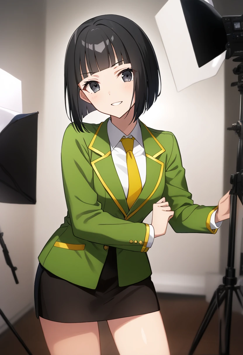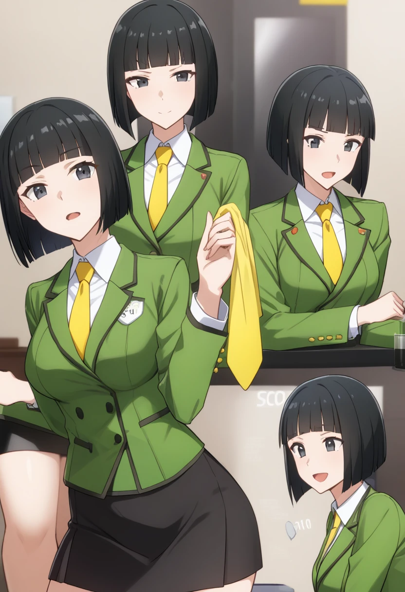 cosChihhi, green jacket, yellow necktie, black pencil skirt,When drawing Senkawa Chihiro herself