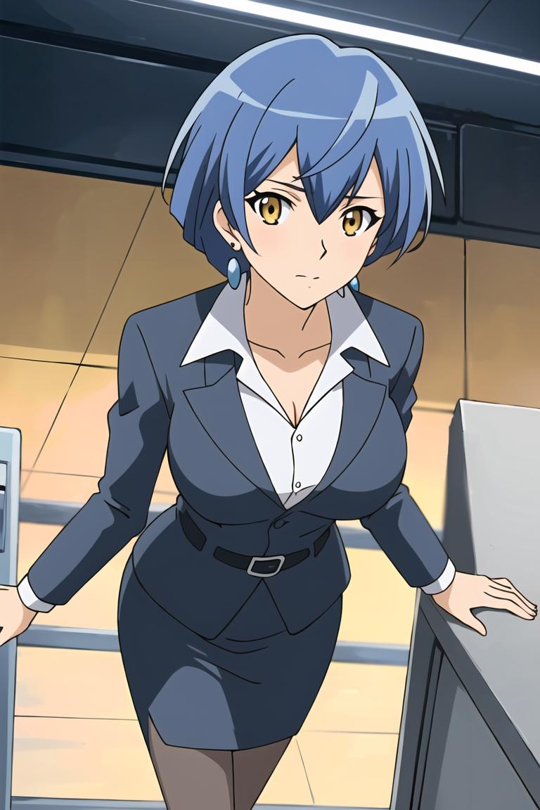 1girl, blue hair, yellow eyes, short hair,